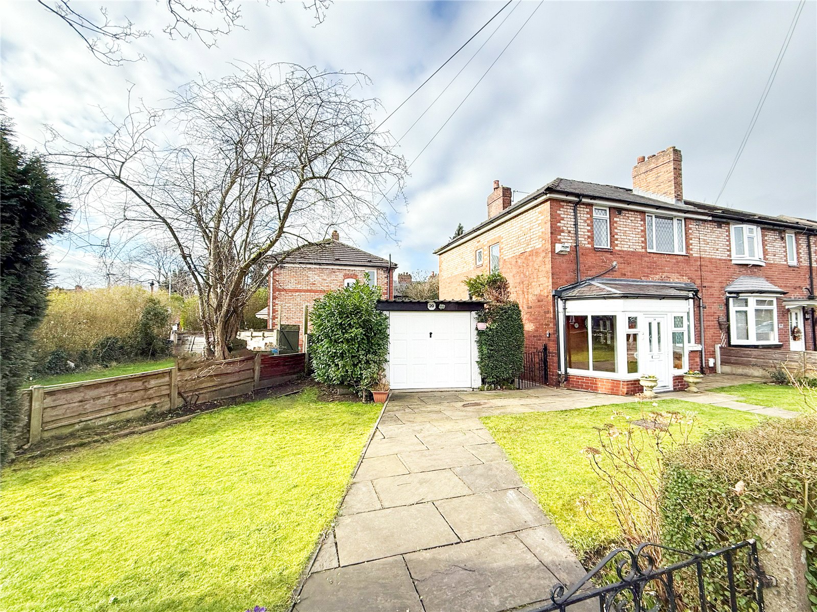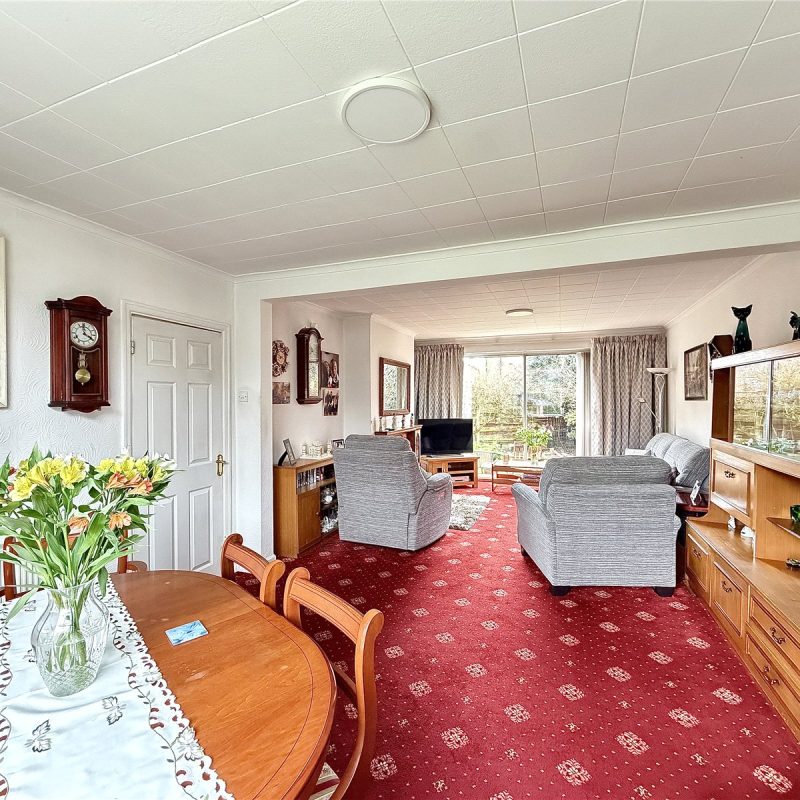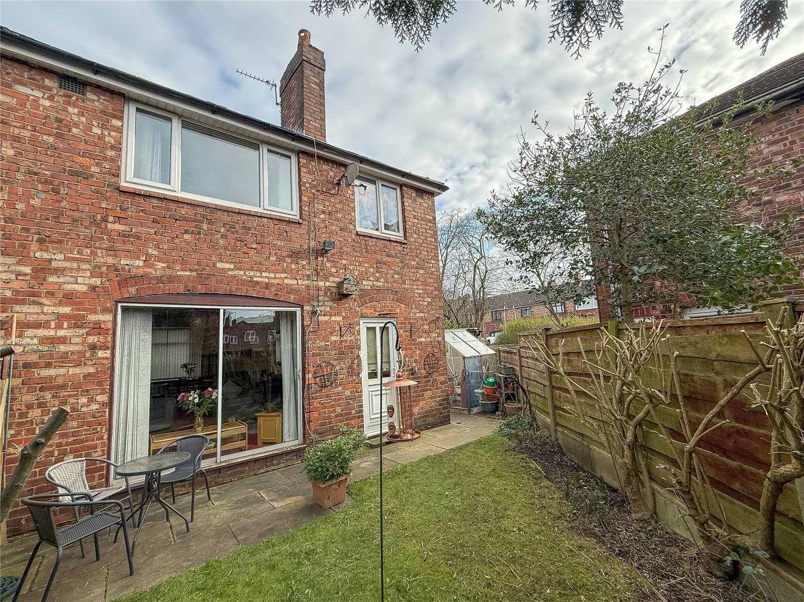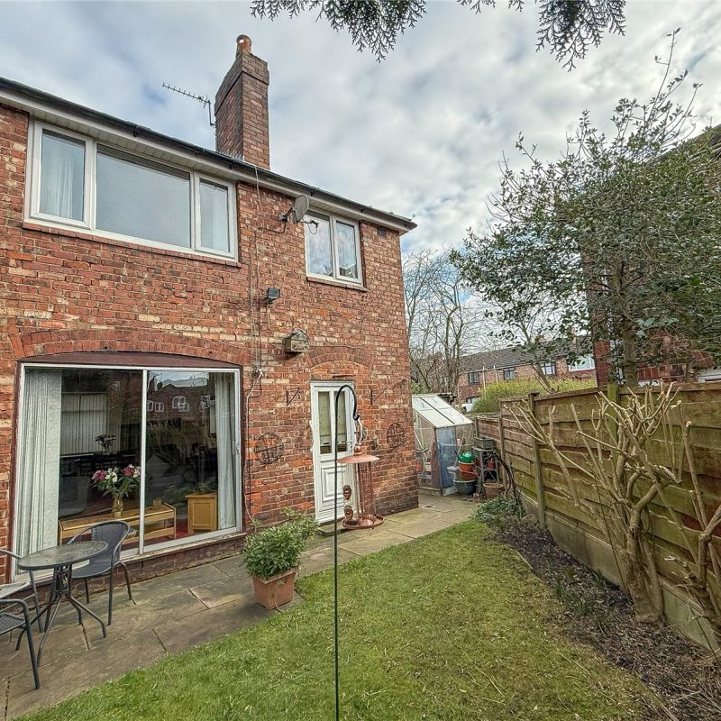 The property is approached via a driveway providing access to the stand-alone garage. Running alongside a lawned garden frontage. A gate to the side of the property opens through to the South Westerly facing garden, with a flag stone patio ideal for outdoor entertaining, with a lawn and borders beyond, fringed by high level fencing.