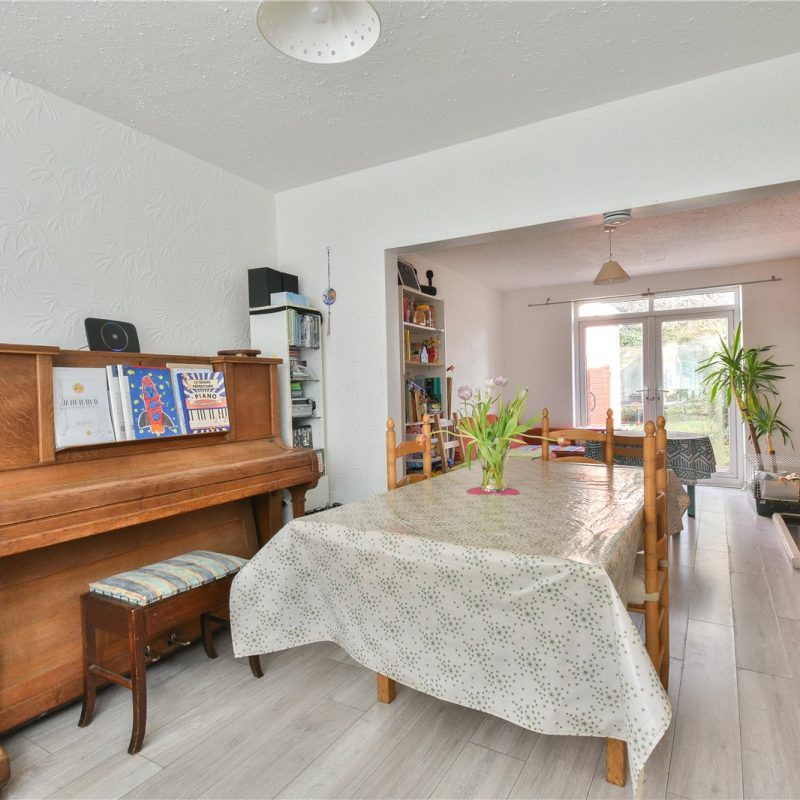 There is an extended kitchen with an ample range of contemporary units with space for appliances. A door from the kitchen opens out to the garden.