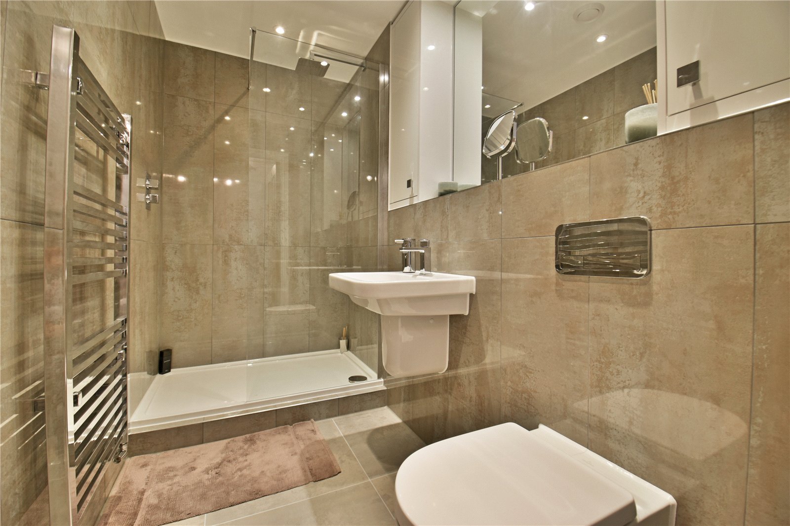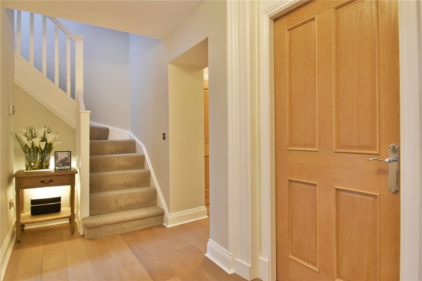 The ground floor also accommodates two beautifully decorated double bedrooms, one with a modern en-suite shower room, alongside a sleek family bathroom and a dedicated office/study—ideal for working from home.