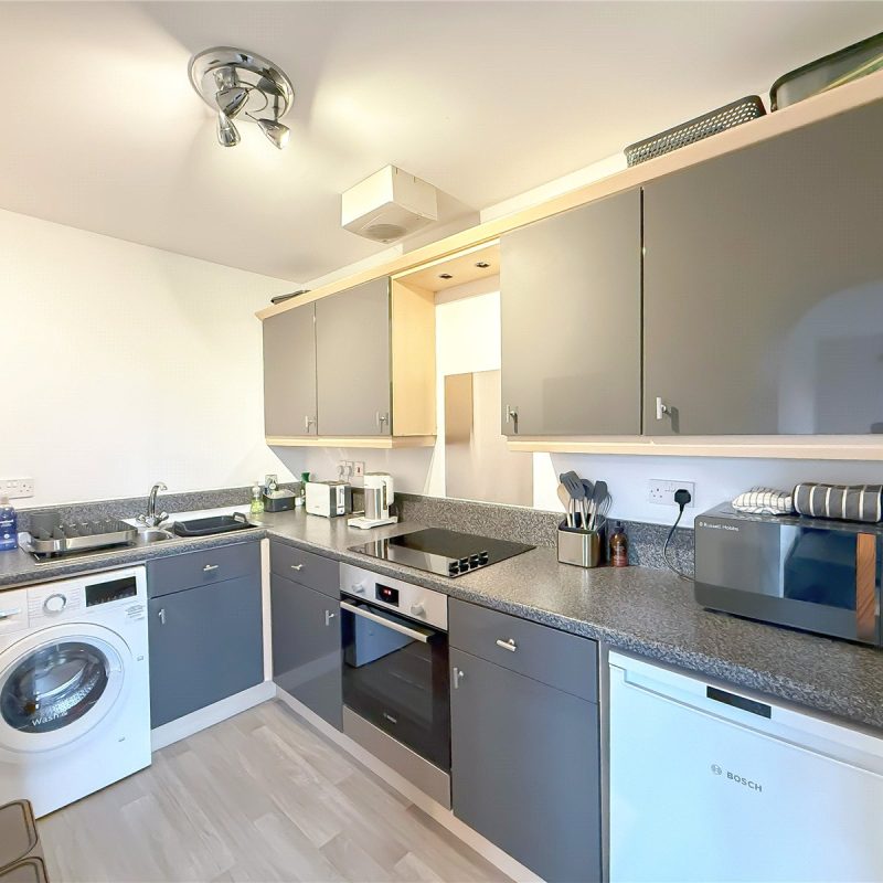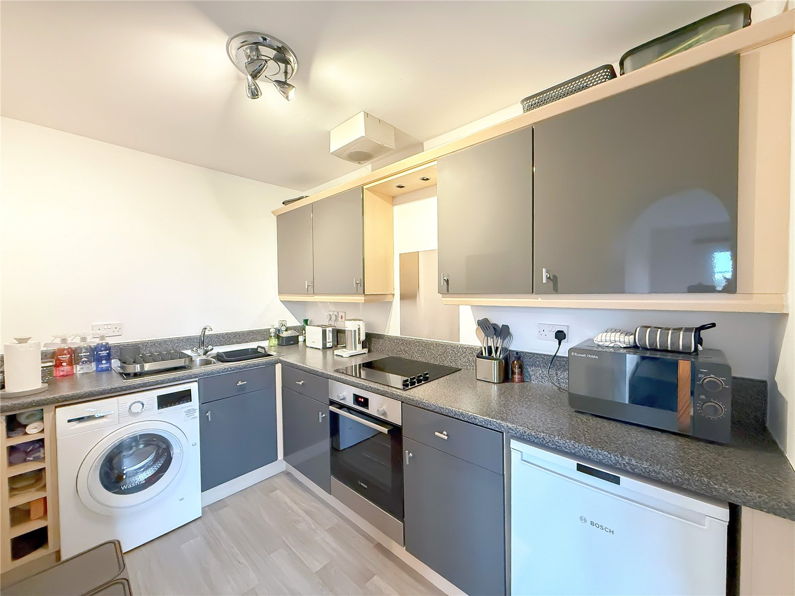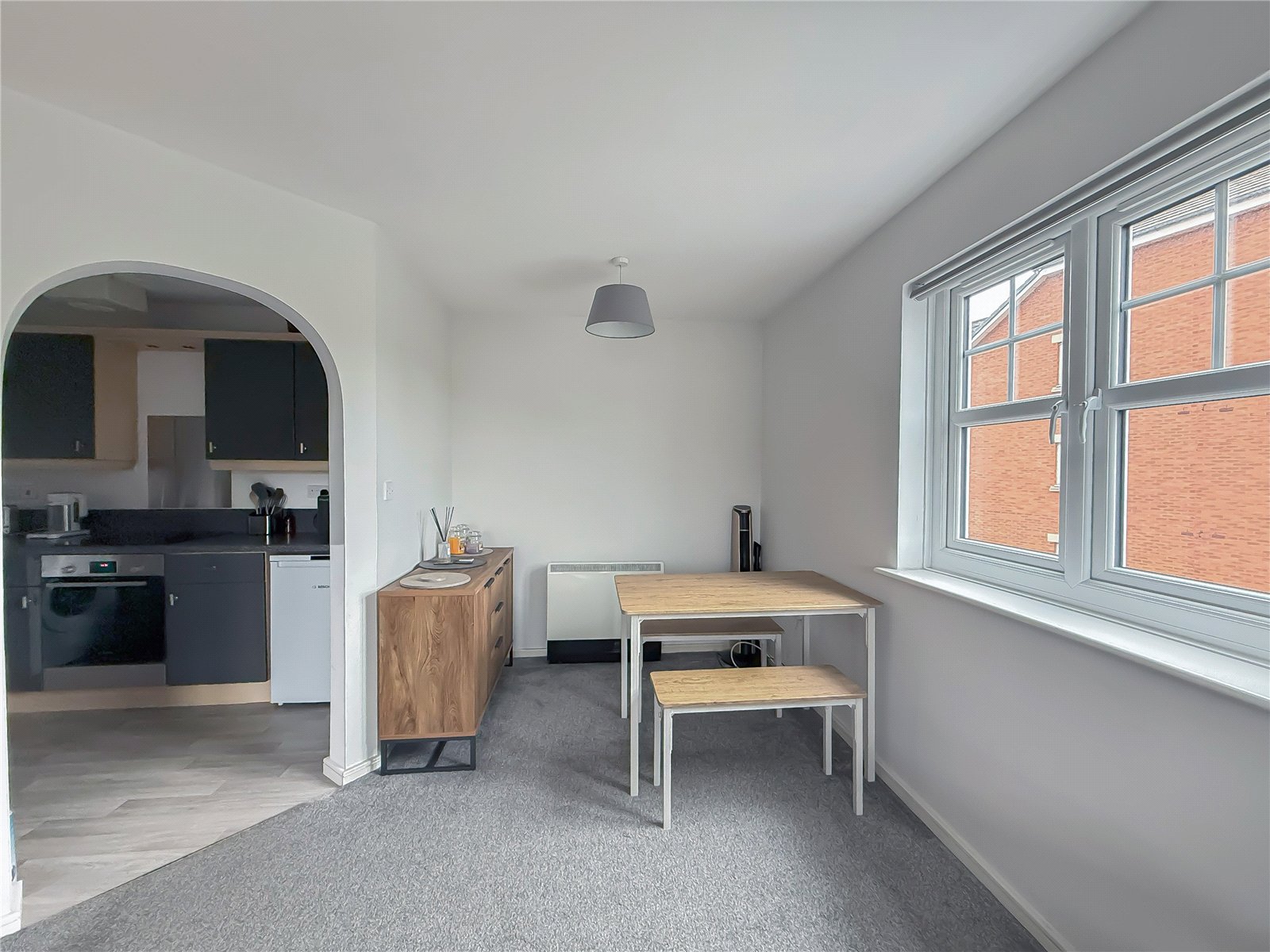 The apartment is accessed via the car park entrance with stairs up to the second floor. The property reveals; an entrance hallway with storage. There is an open plan living/dining space offering ample space for living room furniture and dining table/chairs. A Juliet balcony bathes the room with natural light. There is an opening leading through to the modern fitted kitchen with a range of base units with newly fitted Bosch appliances, including; oven, hob & fridge. There is also space for a washing machine.