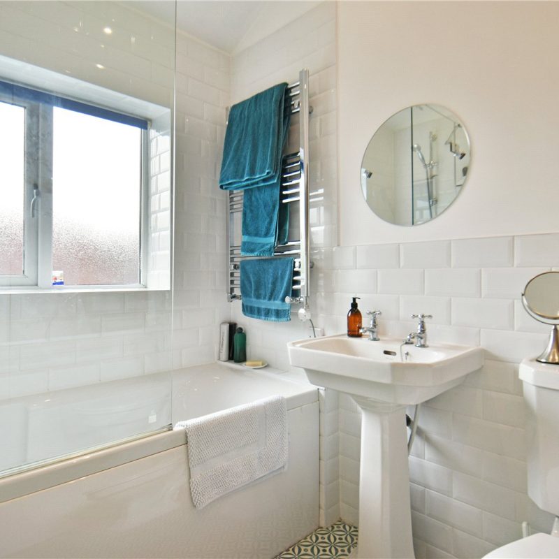 The first floor reveals two bright and spacious double bedrooms with the principal bedroom featuring bespoke fitted wardrobes. There is a further generously proportioned single bedroom boasting an en-suite shower room. The floor is further served by a well-appointed contemporary family bathroom.