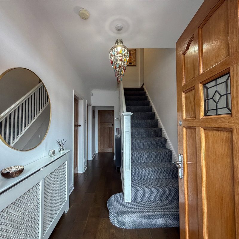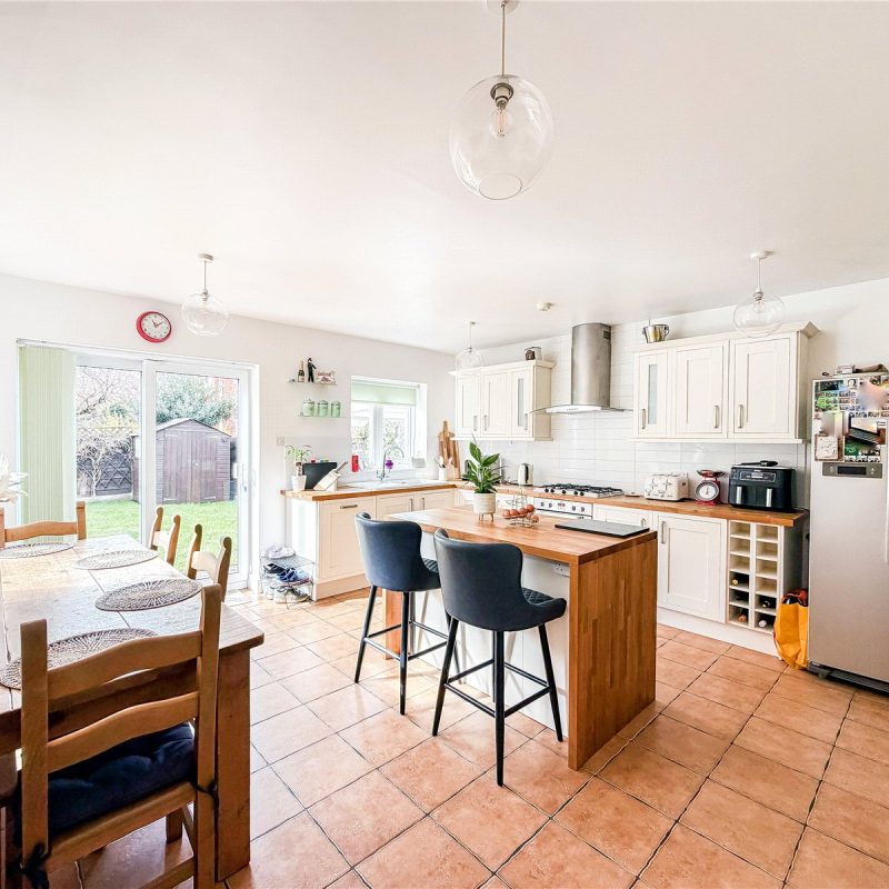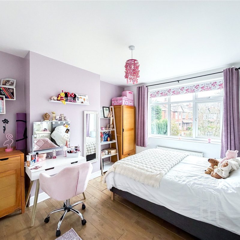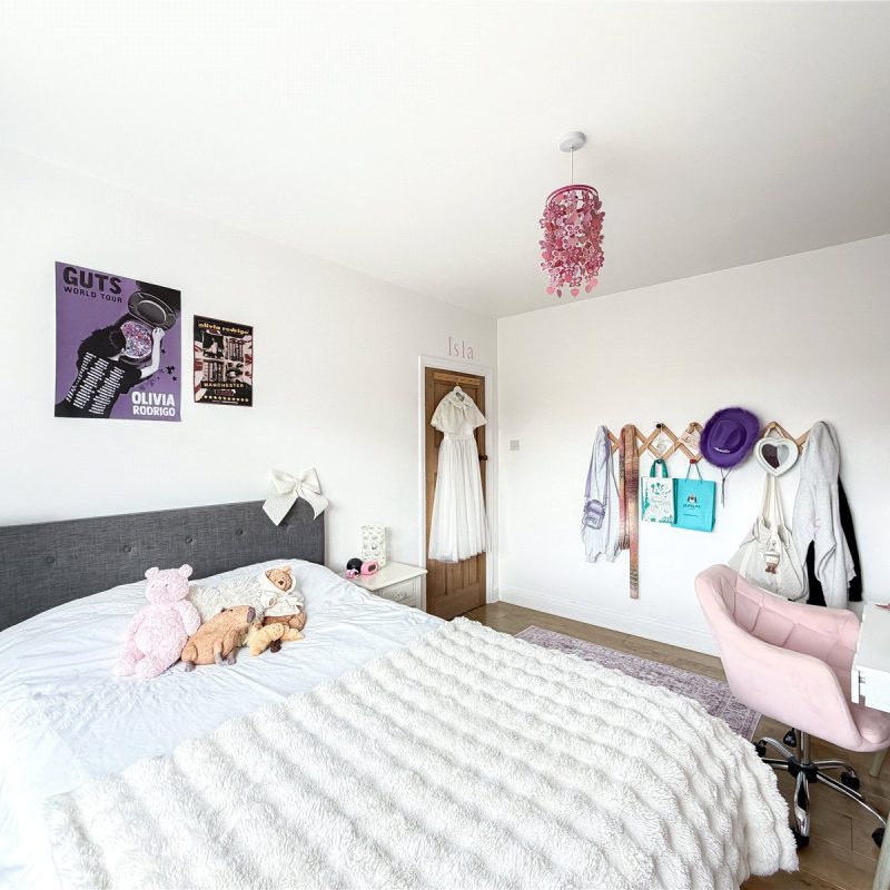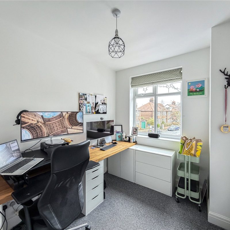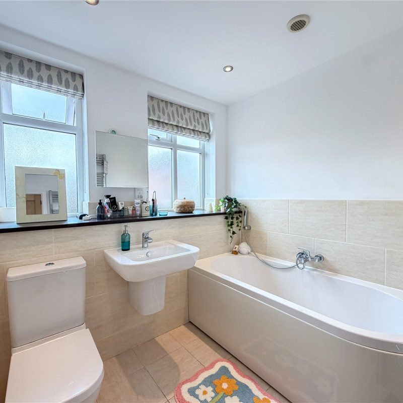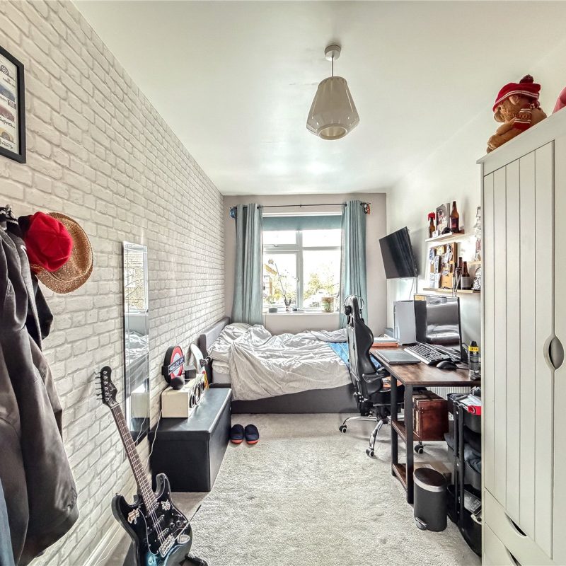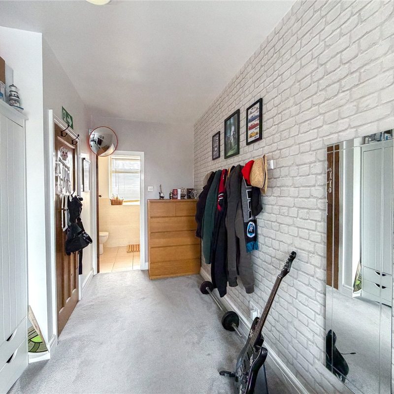 The first floor reveals a split landing. To the left of the property are two generous double bedrooms and a single bedroom, ideal for use as a home office/child’s room, all served by the contemporary family bathroom. There is a further well-proportioned double bedroom served by a modern en-suite shower.