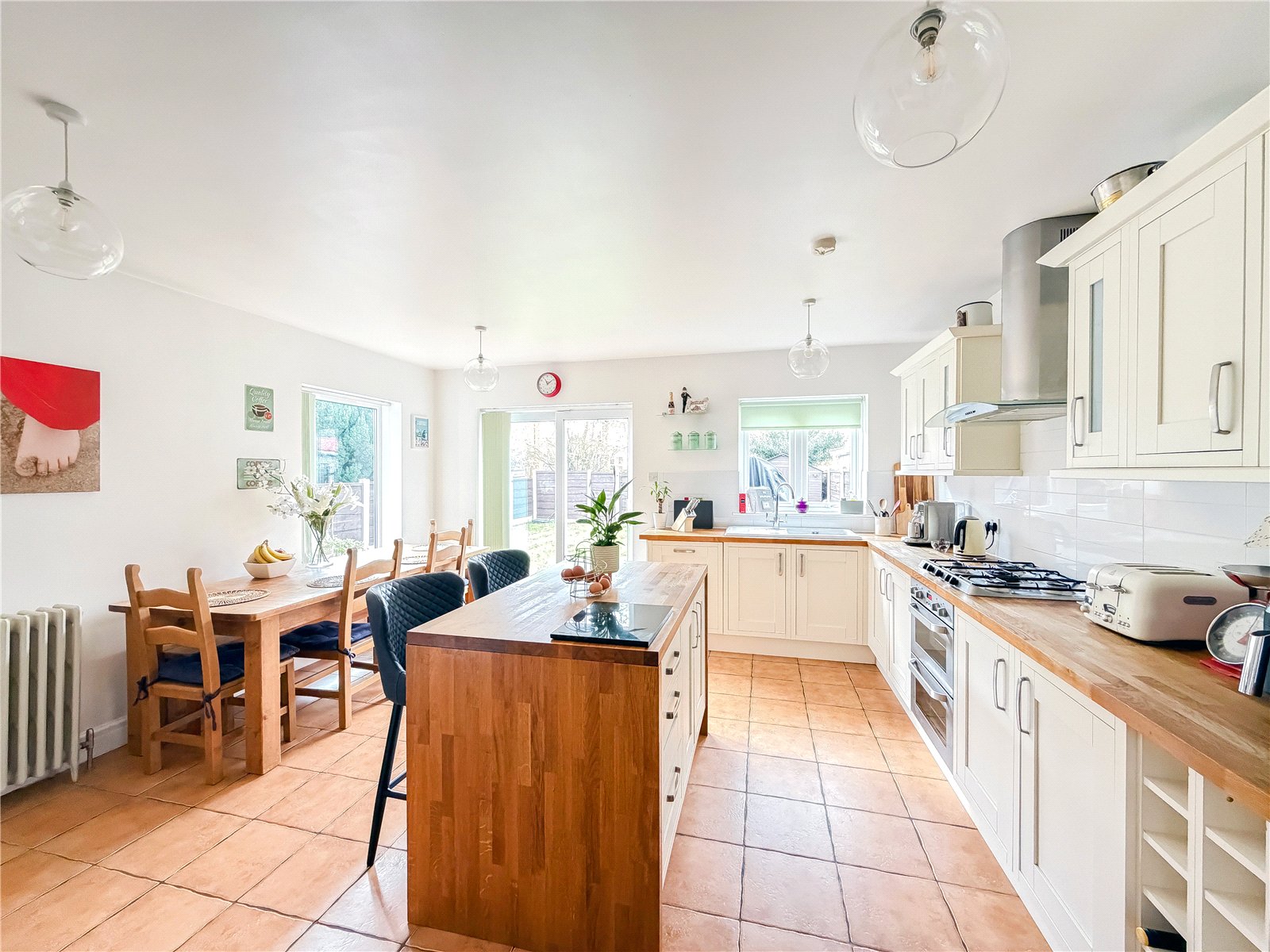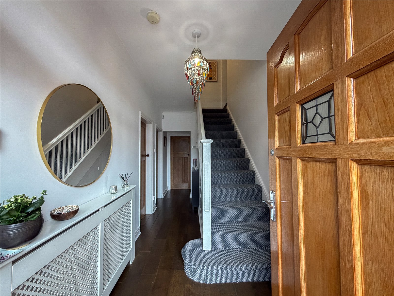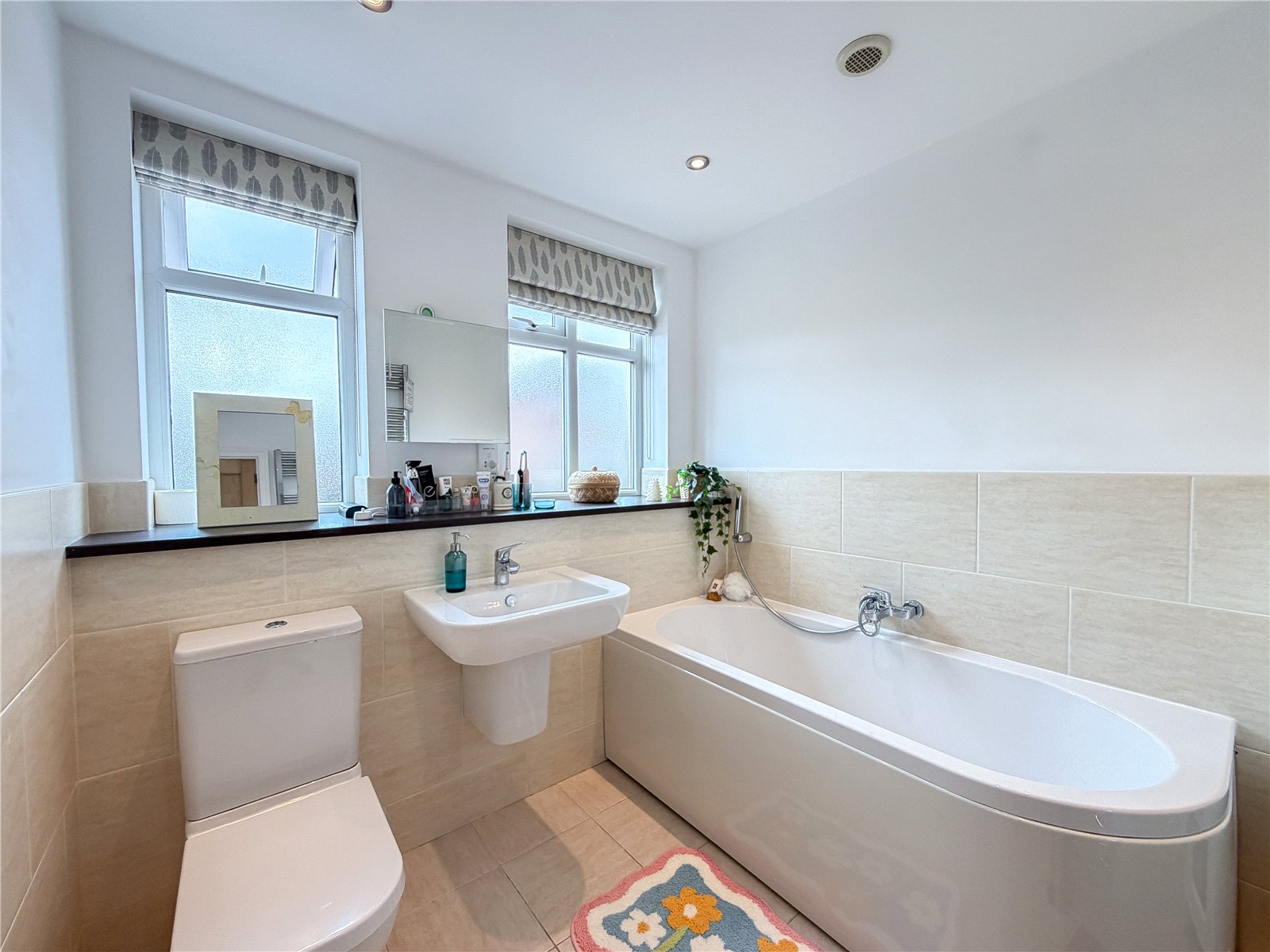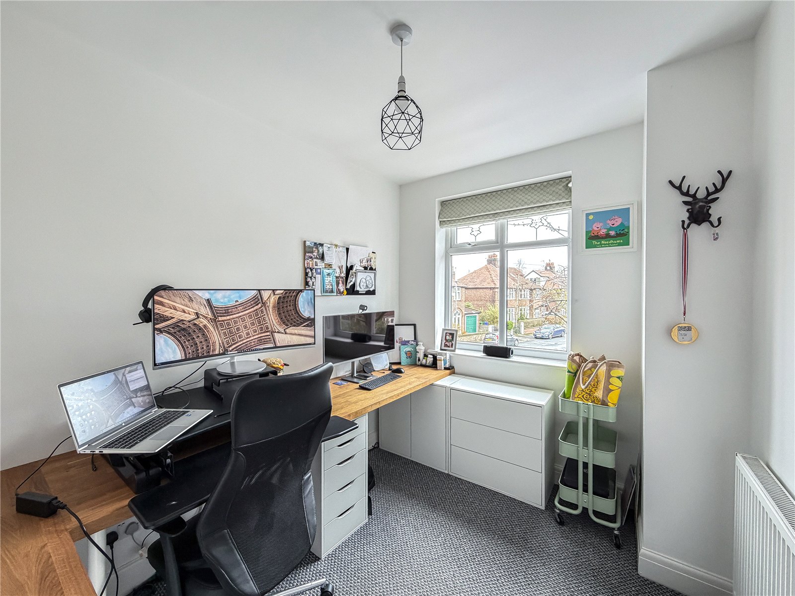 The first floor reveals a split landing. To the left of the property are two generous double bedrooms and a single bedroom, ideal for use as a home office/child’s room, all served by the contemporary family bathroom. There is a further well-proportioned double bedroom served by a modern en-suite shower.