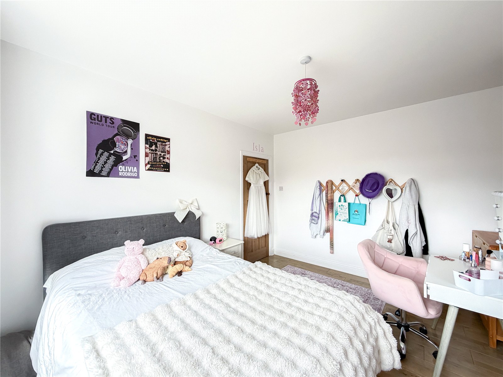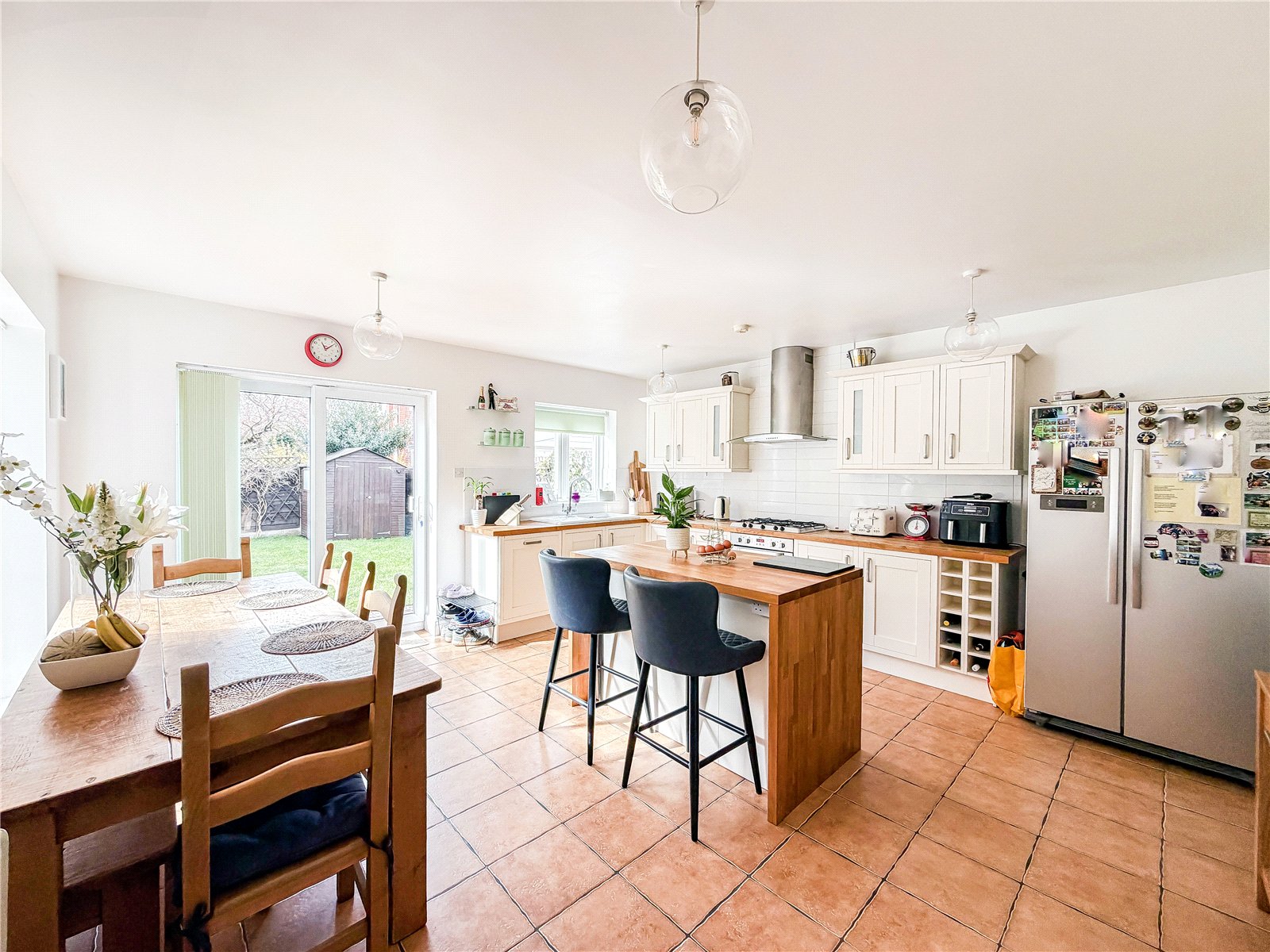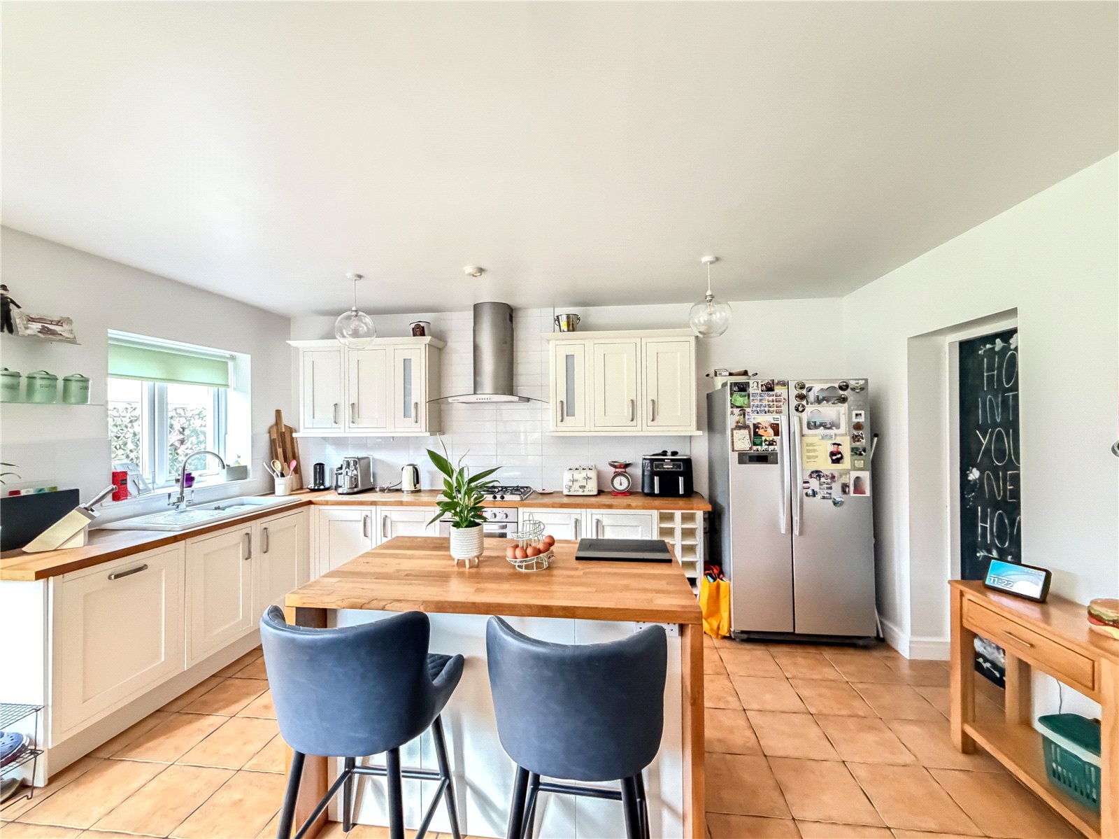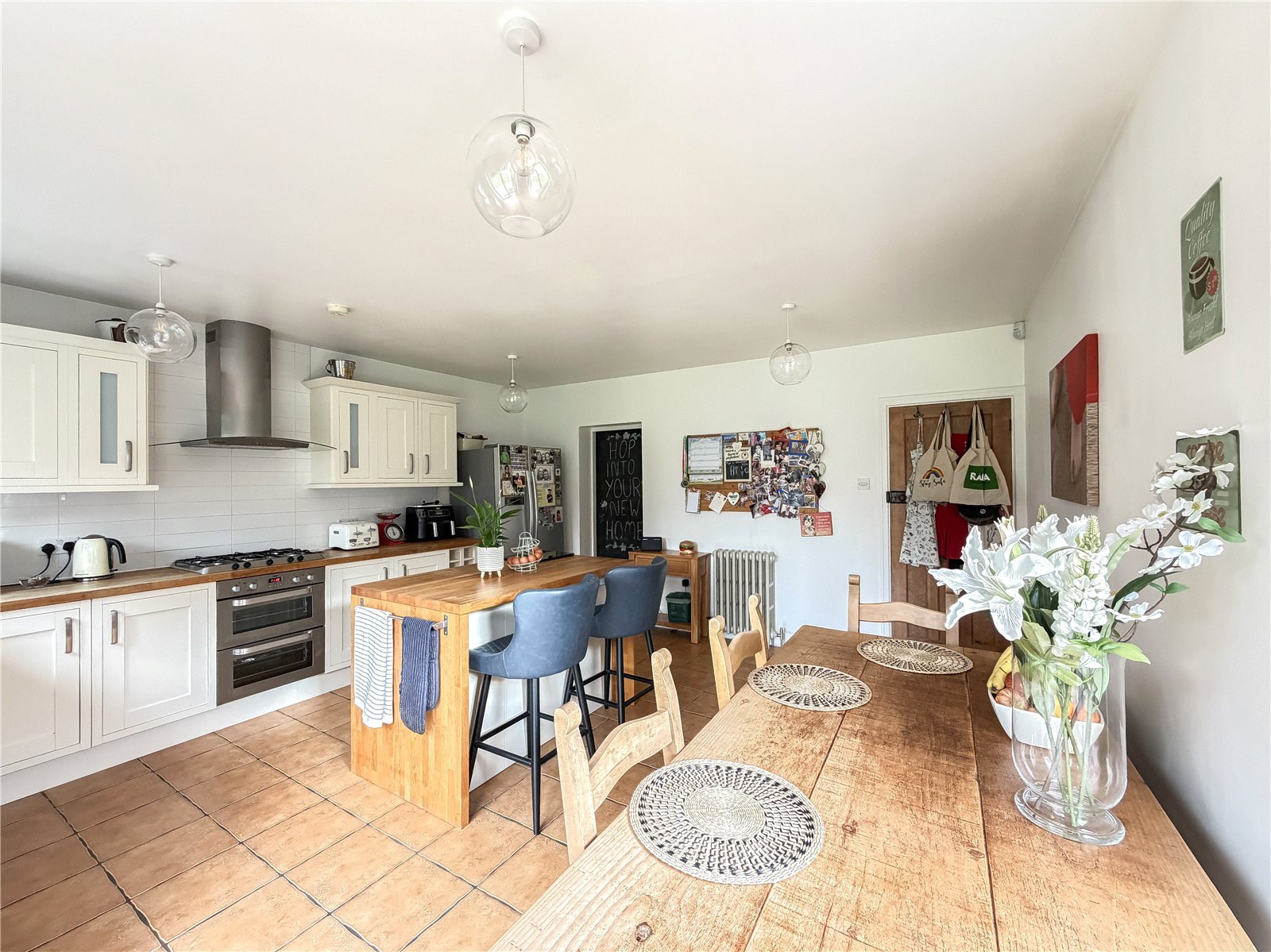 The first floor reveals a split landing. To the left of the property are two generous double bedrooms and a single bedroom, ideal for use as a home office/child’s room, all served by the contemporary family bathroom. There is a further well-proportioned double bedroom served by a modern en-suite shower.