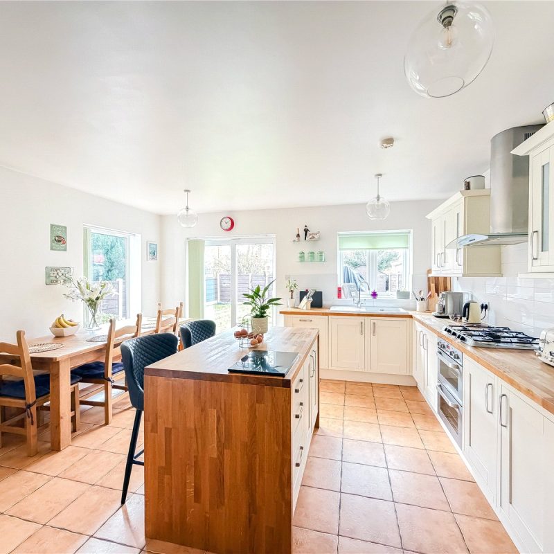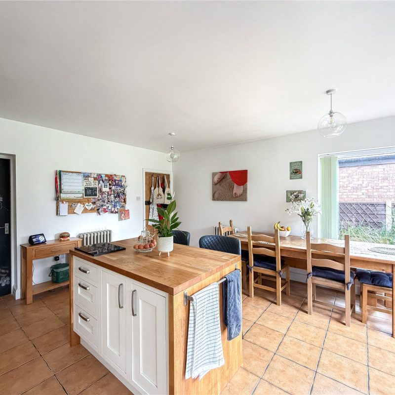 The accommodation consists of a storm porch opening into the entrance hall with WC and stairs rising to the first floor. To the front of the property is a bright and spacious sitting/dining room with large bay window bathing the room in natural light. There is an elegantly proportioned living room to the rear, with feature fireplace and sliding patio door enjoying views over the garden. Running alongside, is the superb, extended open plan kitchen/diner, fitted with a selection of bespoke units with feature Central Island. The room also offers ample space for a large dining table and chairs creating the ideal space for entertaining and day-to-day family living and entertaining. The room is bathed in natural light from the dual aspect window and sliding doors opening out to the South facing garden. A door from the kitchen, provides internal access, through to the garage.