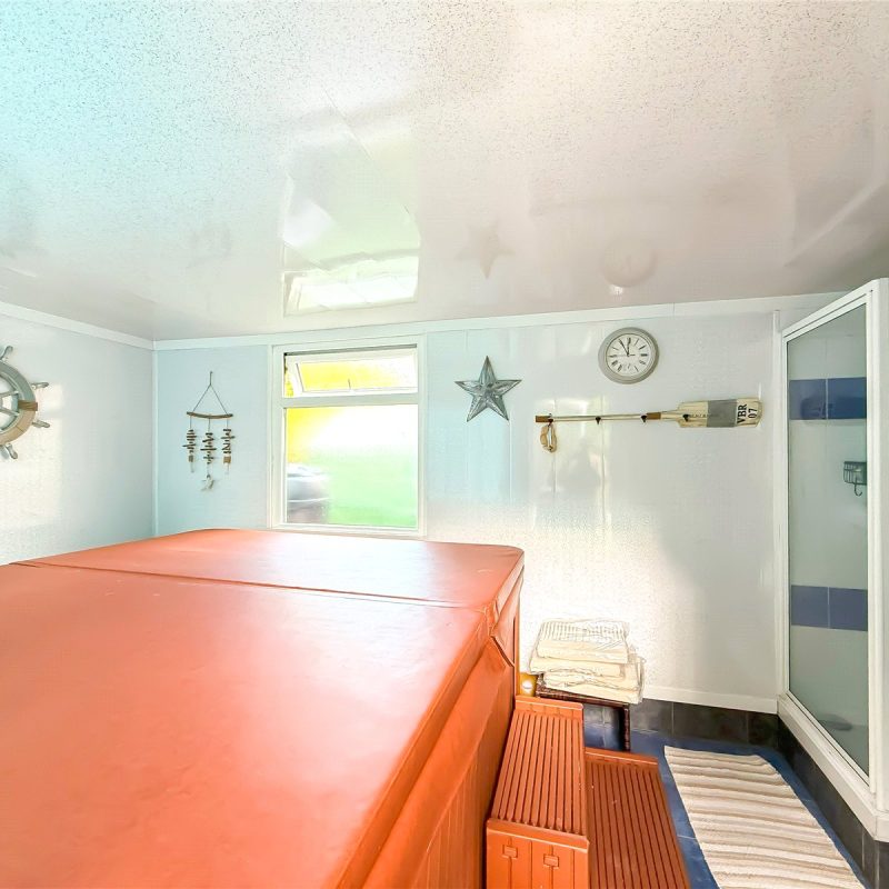The property is approached via a gated block paved driveway providing access to the garage. A gate to the side of the property leads through to the spectacular directly south facing gardens; there is an expanse of lawn fringed by mature plants and trees, a gate takes you through to the separate courtyard area, accessible from the rear reception and utility room. Furthermore there is a garden spa room, with hot tub and shower – the garden is truly wonderful and provides the perfect space for outdoor entertaining.