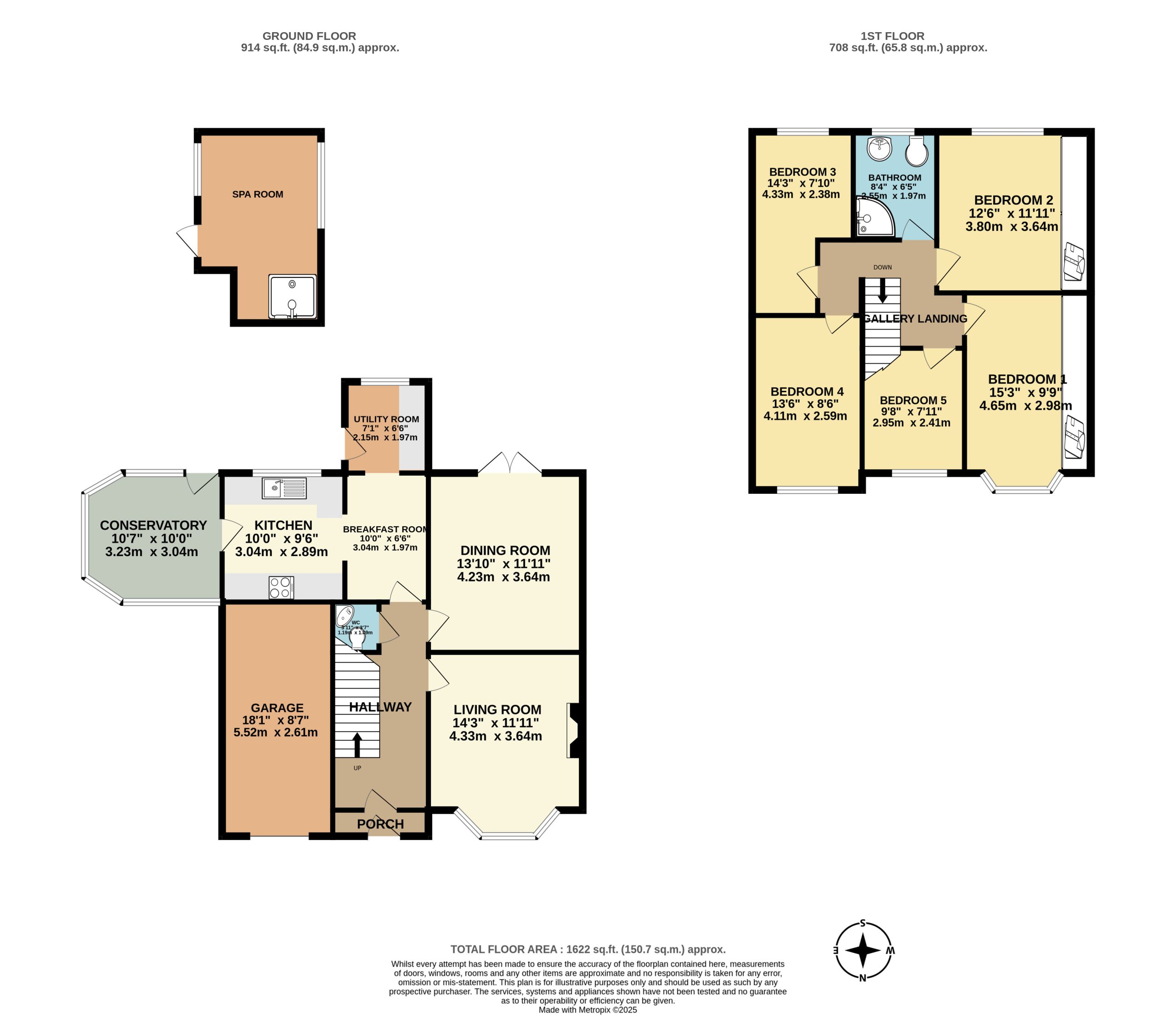 Approx. 1622 Sq.Ft + 140 Sq.Ft Garden Spa Room