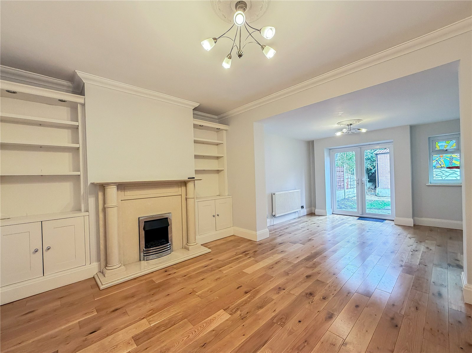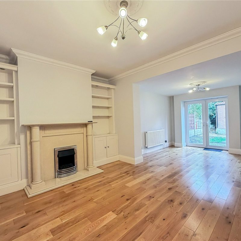 Opening to left of the hallway is the bay-fronted lounge enjoying views over the garden frontage. To the rear, is the elegantly proportioned living room, with bespoke alcove storage. The living room, flow seamlessly through to the dining room, with double doors out to the rear garden. Running alongside is the extended kitchen/Breakfast room, fitted with an ample selection of contemporary base and wall units, with space for appliances. There is an ideal area for a table and chairs – perfect for informal dining. A door off the breakfast area, provides access out to the side of the property.