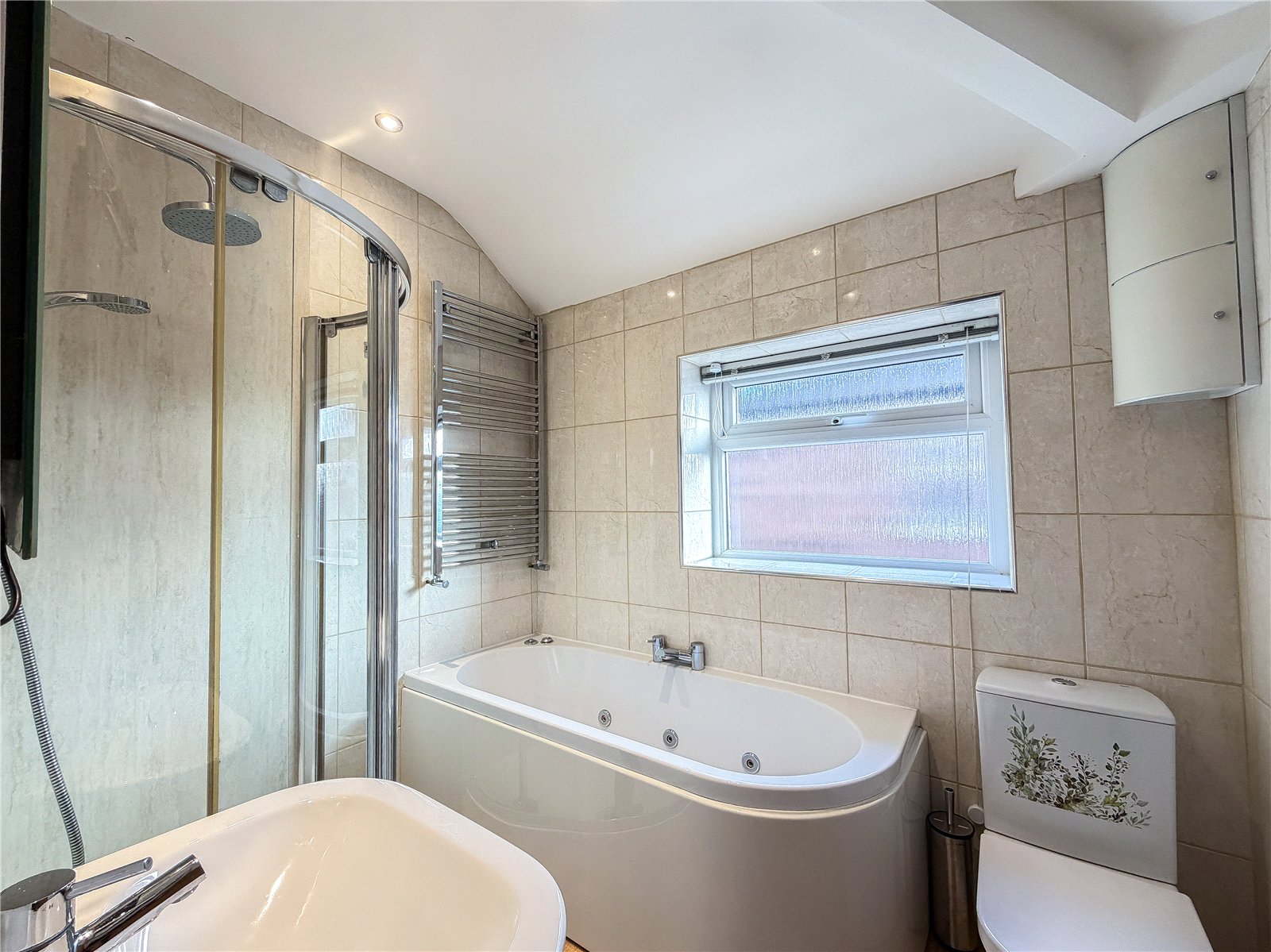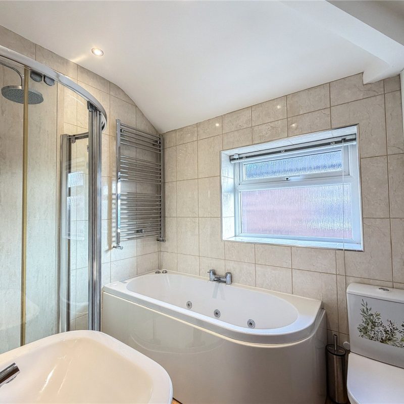 The first floor reveals two well-proportioned double bedrooms, and two generous single bedrooms. The principal bedroom benefits from an en-suite shower room with electric shower, with the second double bedroom having bespoke fitted wardrobes. The floor is further served by the modern four-piece bathroom with whirlpool bath and combi shower.