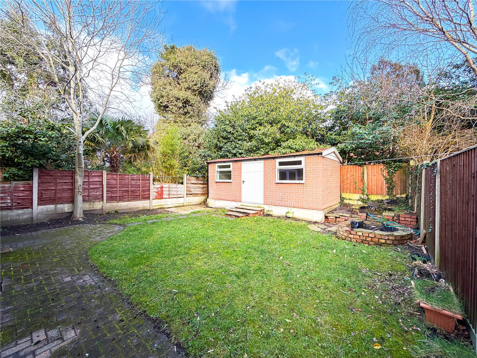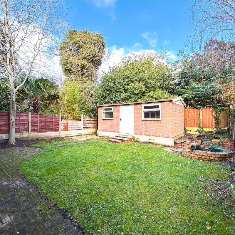 The property is approached via a block paved driveway with and area of garden frontage. A gate to the side of the property leads through to the rear enclosed garden, with patio area and an area of lawn beyond, all fringed by high-level fencing. There is a garden room with full insulation and electrics – ideal for use as a home office/gym.