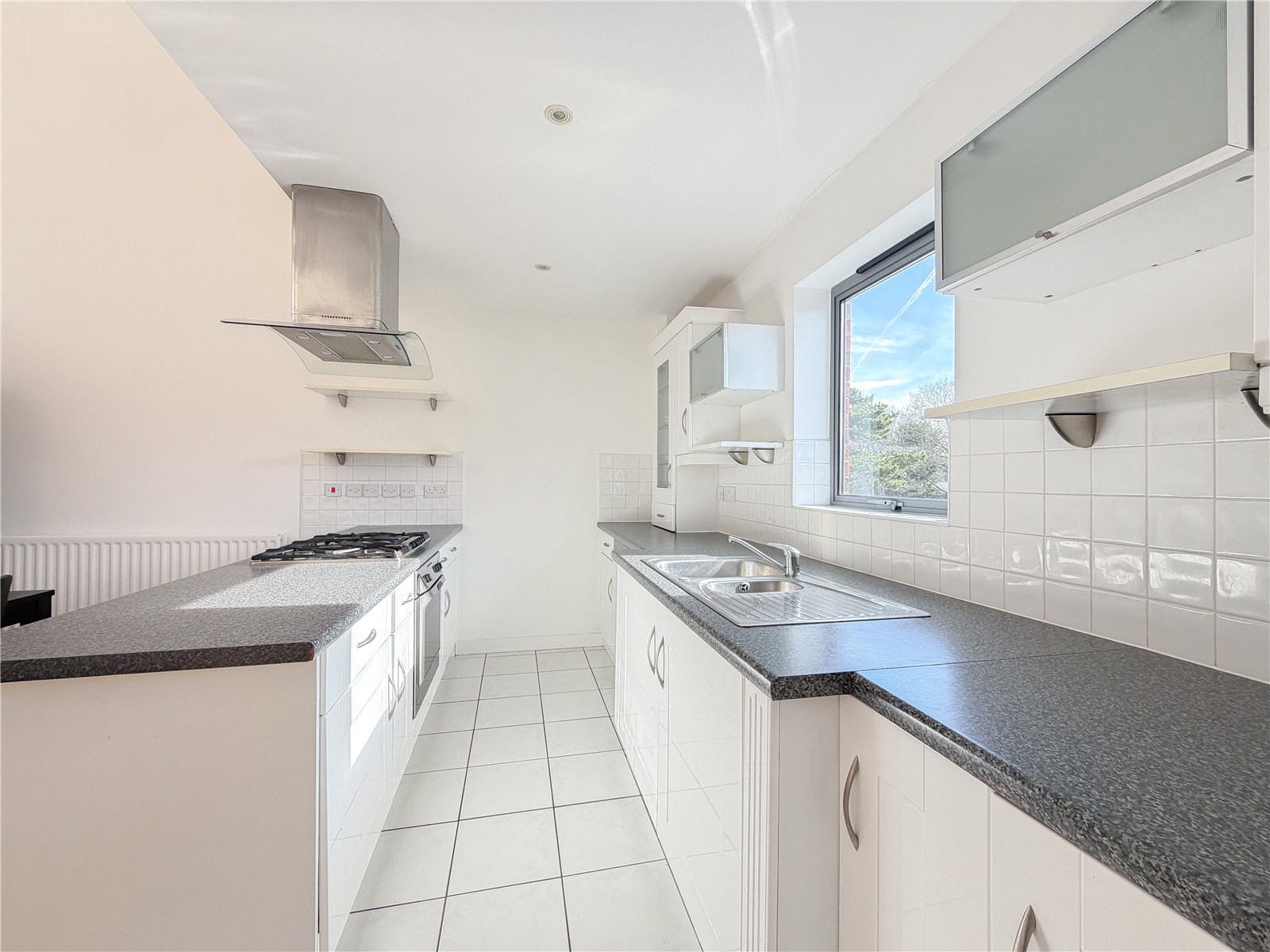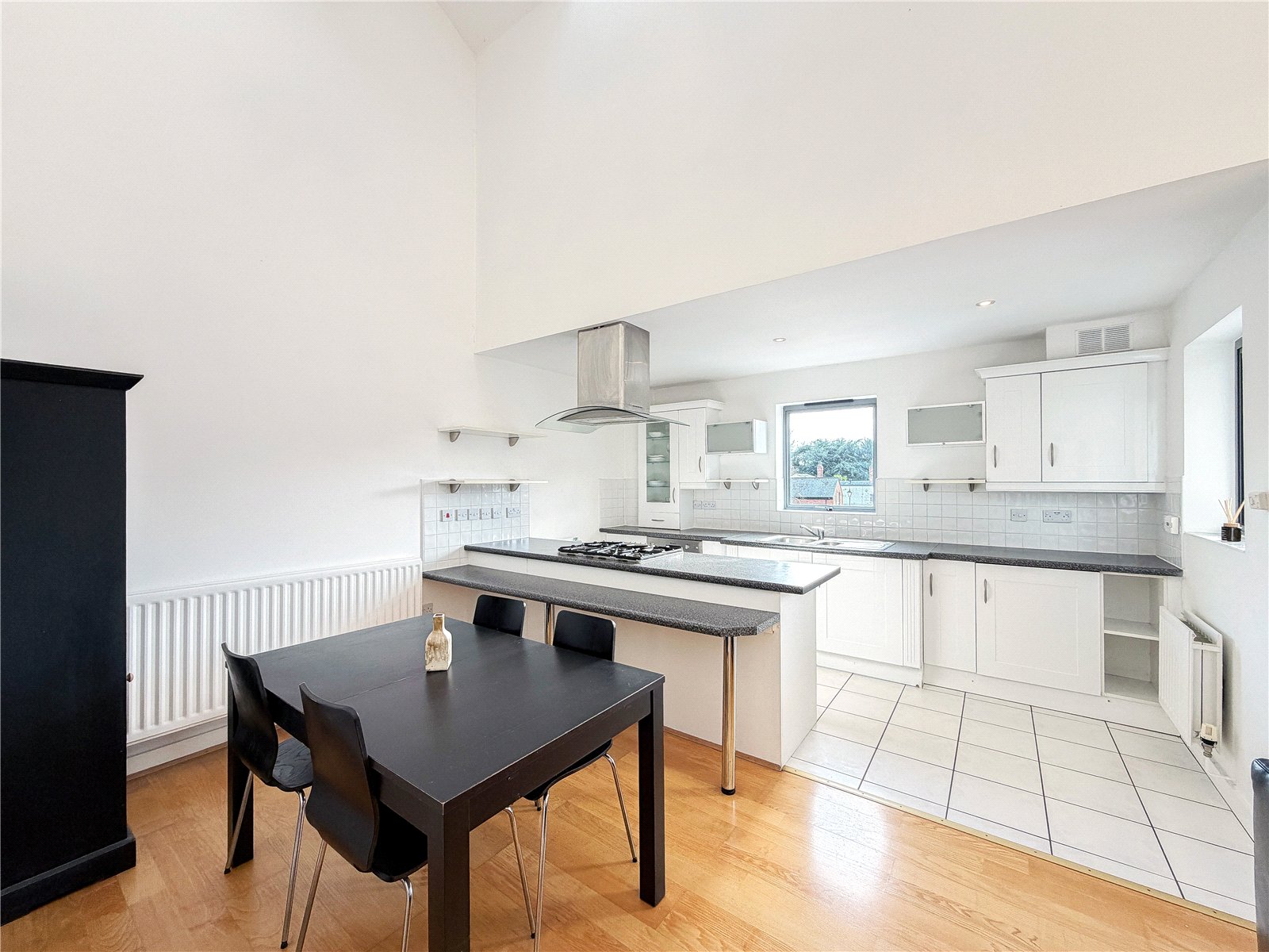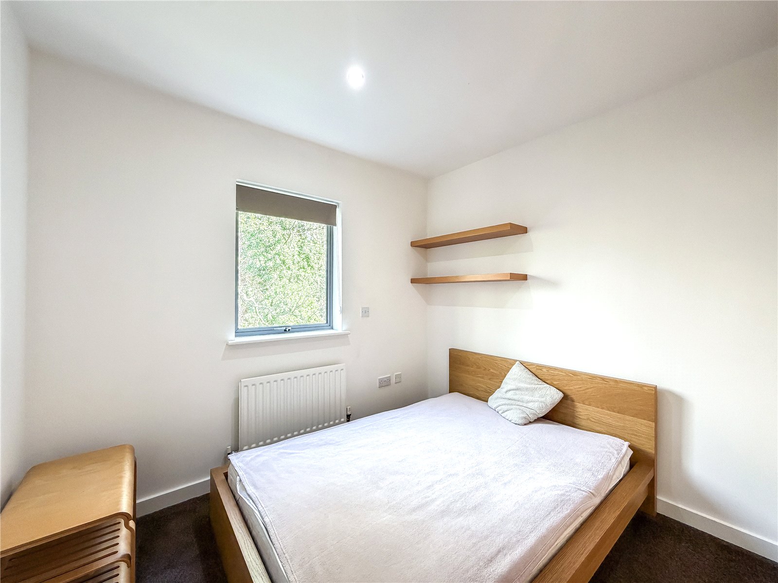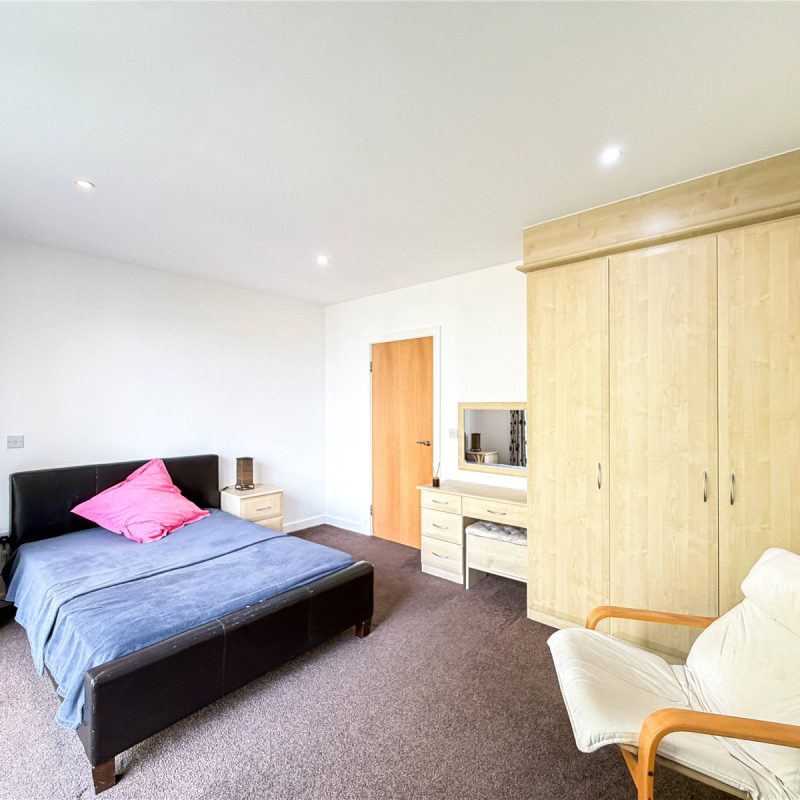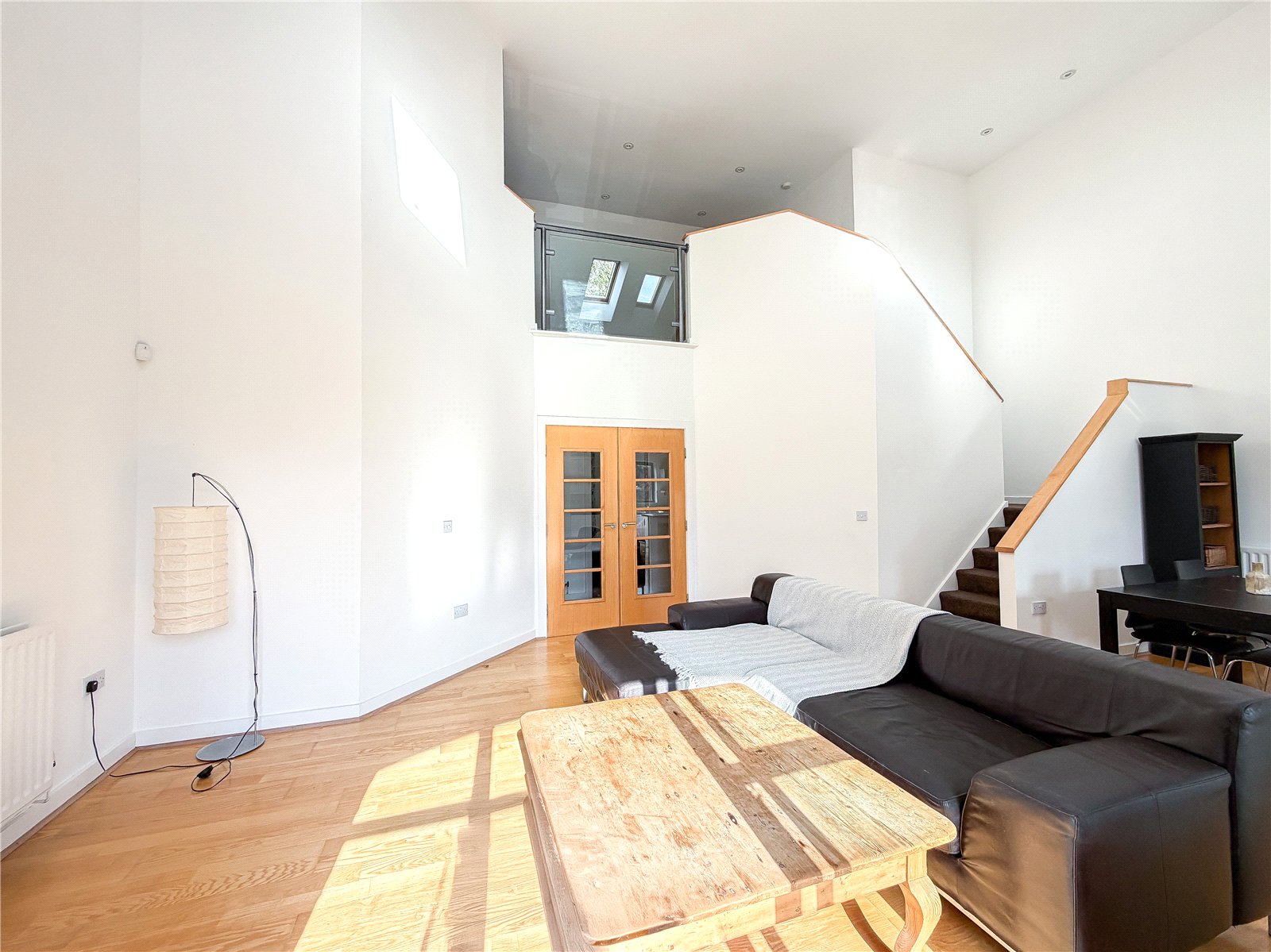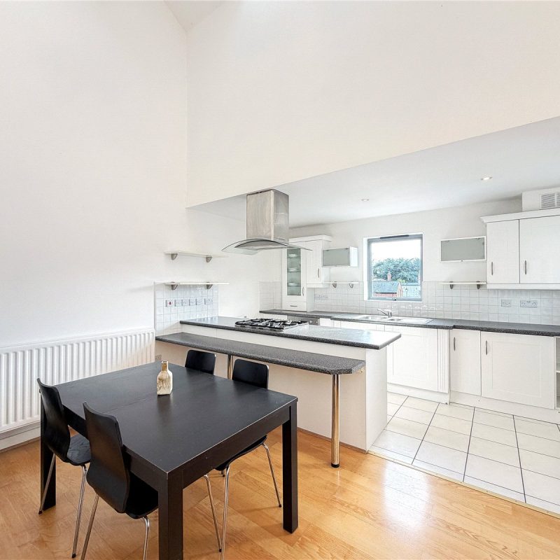 The accommodation reveals an entrance hall with useful storage. Double doors open into the spectacular open- plan contemporary living space flooded in natural light from the roof lights above and sliding door out to the Southerly facing balcony. The kitchen is fitted with a selection of contemporary base and wall unites with breakfast bar, all complimented by integrated appliances. There are two well-proportioned double bedrooms both with fitted wardrobes, with one of the bedrooms also benefitting from a modern en-suite shower room and featuring a tall arched window overlooking the woodland to the rear. The floor is further served by the well-appointed bathroom.