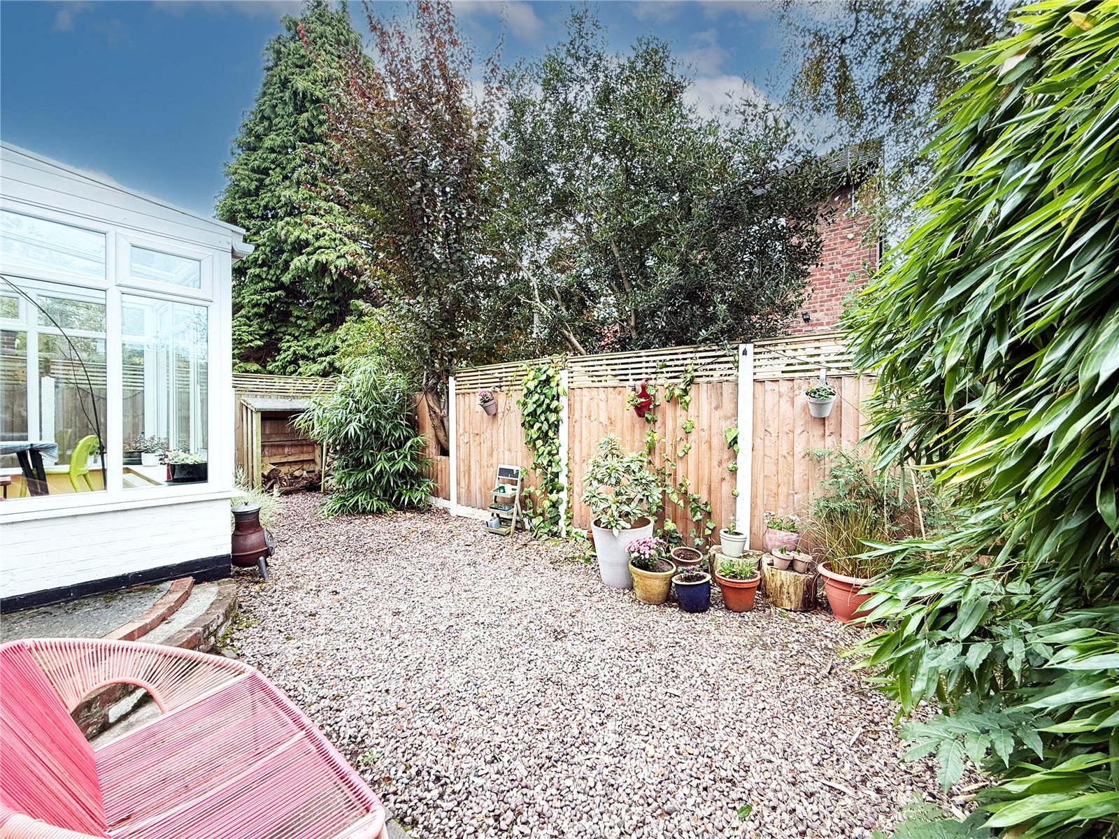 The property is set back from the road and approached via a gravel driveway providing parking for two vehicles. There is also a fully enclosed and well established, private garden with seating area and shrub borders to the front. To the rear of the property is a directly south facing courtyard garden.