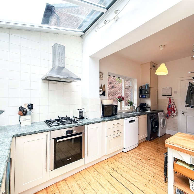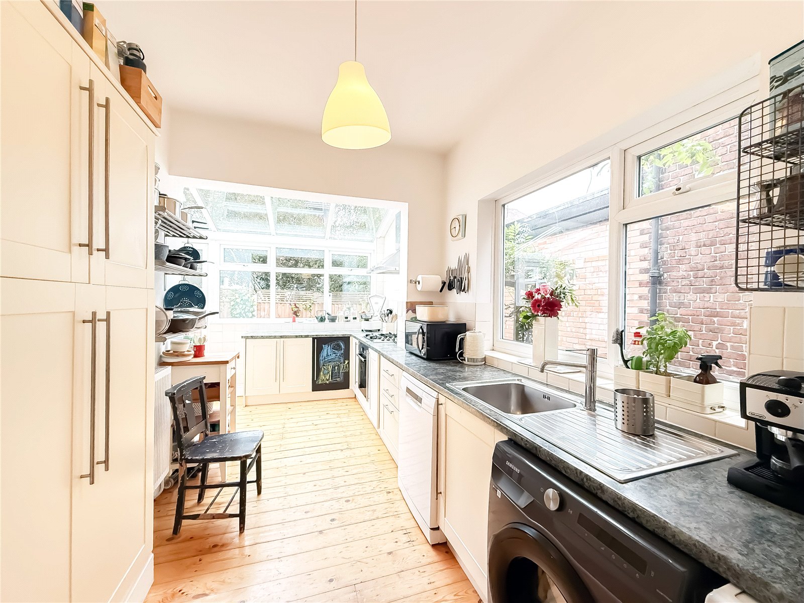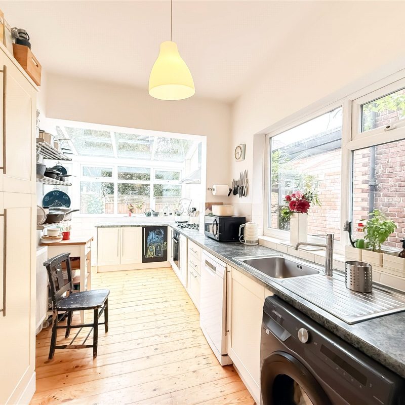 The accommodation reveals; an entrance hall with stairs rising to the first floor and WC. There is an elegantly proportioned living room with tall corniced ceilings and a tall bay window enjoying views over the attractive garden frontage. To the rear is dining room, with double doors opening through to the conservatory – an ideal space for day-to-day family living. Running alongside the rear reception room is the stylish kitchen, fitted with a selection of contemporary base and wall units, with space for free-standing appliances.