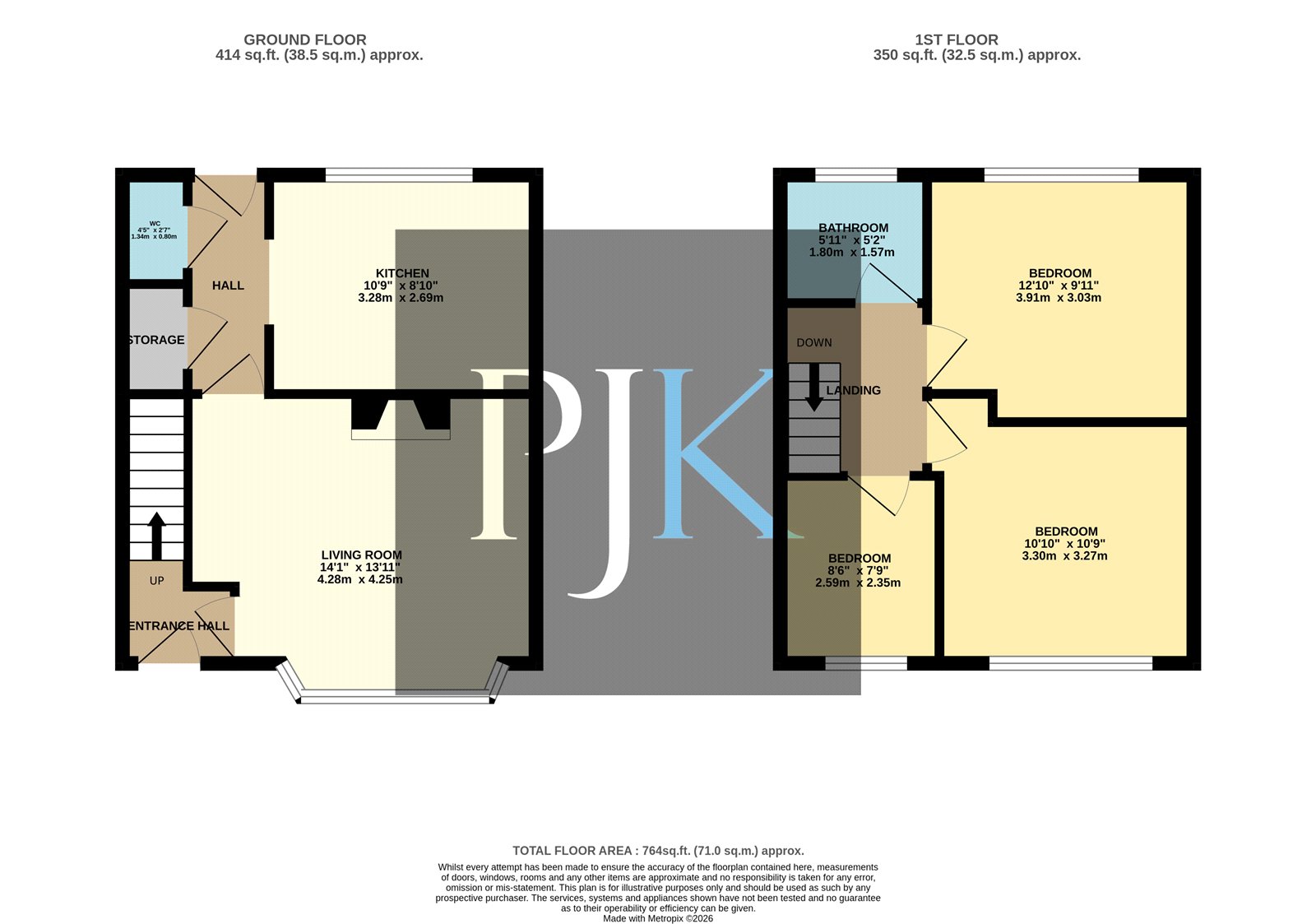 The accommodation begins with a welcoming entrance hallway providing access to the first floor. To the front of the property is a bright bay-fronted living room featuring an attractive fireplace, creating a comfortable reception space for everyday living. To the rear is a well-presented fitted kitchen offering a range of attractive matching wall and base units, quality work surfaces and ample space for freestanding white goods. Completing the ground floor is a convenient downstairs WC.