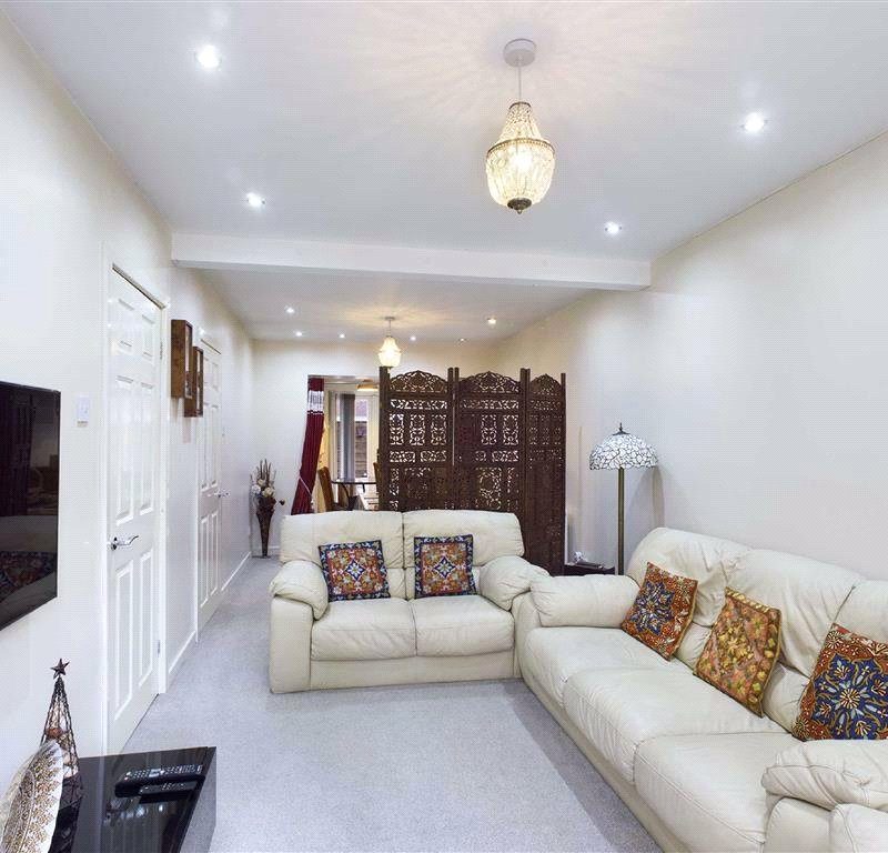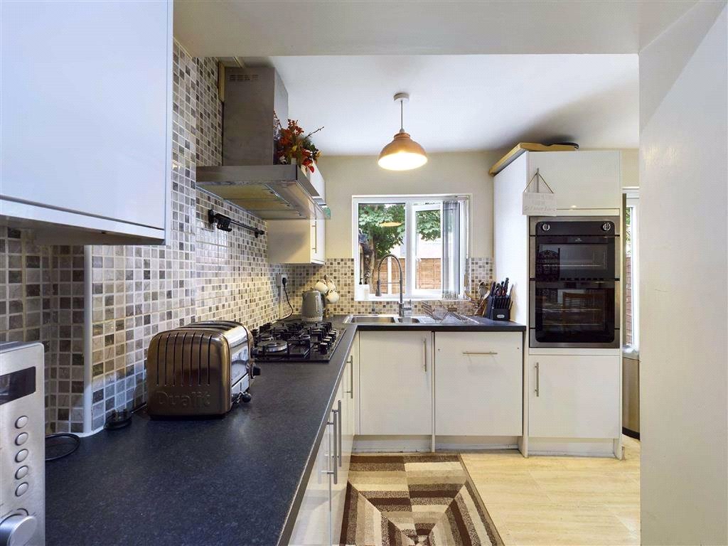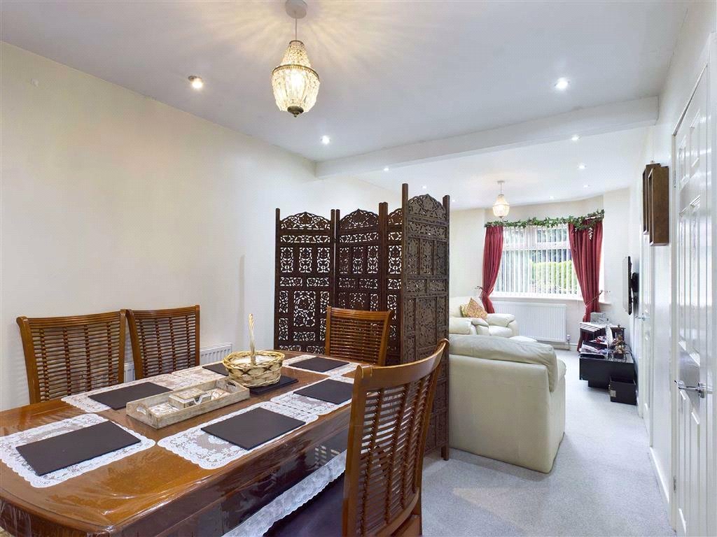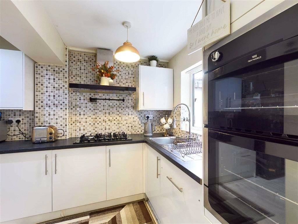 Internally, the home opens with a welcoming entrance hallway that houses the stairs to the first floor and a useful downstairs WC. The spacious open-plan living and dining area creates a versatile space, perfect for both entertaining and everyday family life. To the rear, the well-presented kitchen boasts ample matching wall and base units and excellent work surface space.