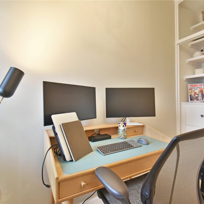 The first floor reveals two well-presented bedrooms, including a full-width bedroom to the rear, created by the removal of the chimney breast to maximise space. These rooms are served by a beautifully finished modern bathroom with a bath and shower over, wash basin and WC. The second floor is home to a superb master bedroom, illuminated by twin skylight windows, offering a peaceful and private retreat.