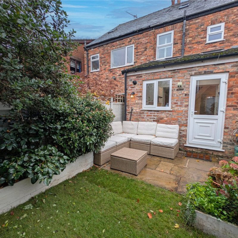 Externally, the property benefits from a longer-than-average rear garden, with a tidy lawn and patio seating area ideal for outdoor dining. The property retains rear ginnel access, ensuring practical access without compromising privacy.