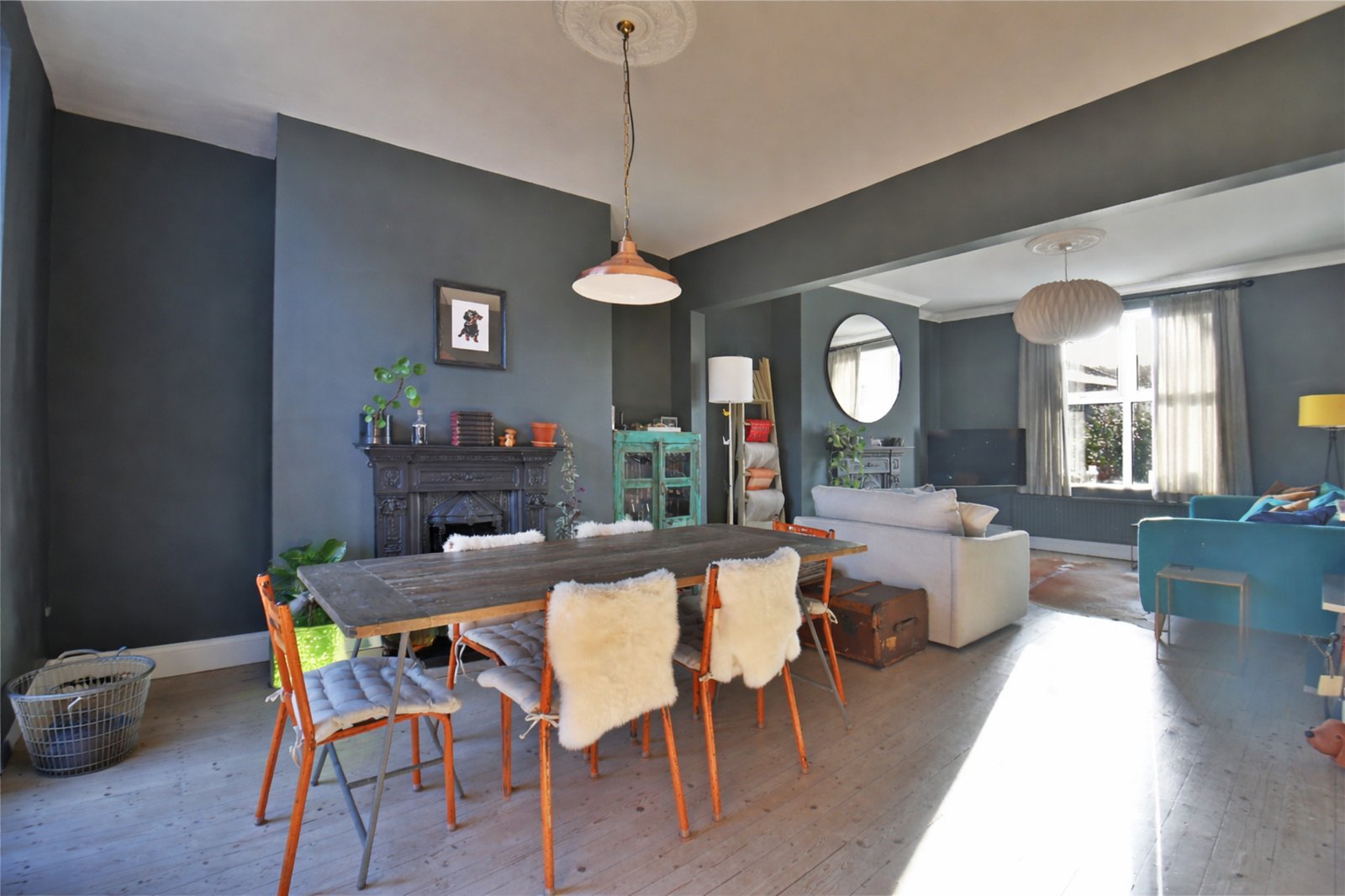 The first floor reveals two well-proportioned double bedrooms, both full of character with high ceilings and ample space for either fitted or free-standing furniture. The principal bedroom further benefits from attractively restored wooden flooring. These rooms are served by a stylish four-piece family bathroom featuring a large walk-in shower, bath, wash basin and WC.