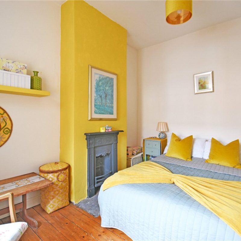 To the first floor are two generous double bedrooms, both retaining period fireplaces, along with a well-proportioned family bathroom finished with modern fittings.