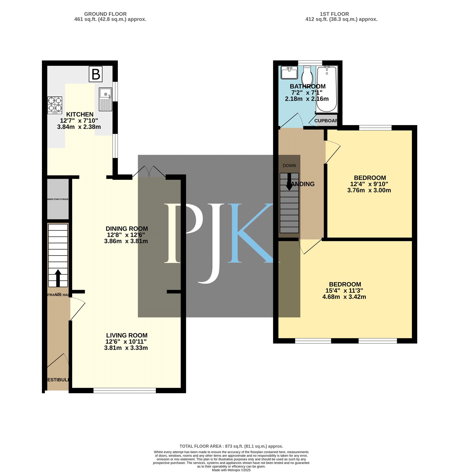 To the first floor are two generous double bedrooms, both retaining period fireplaces, along with a well-proportioned family bathroom finished with modern fittings.
