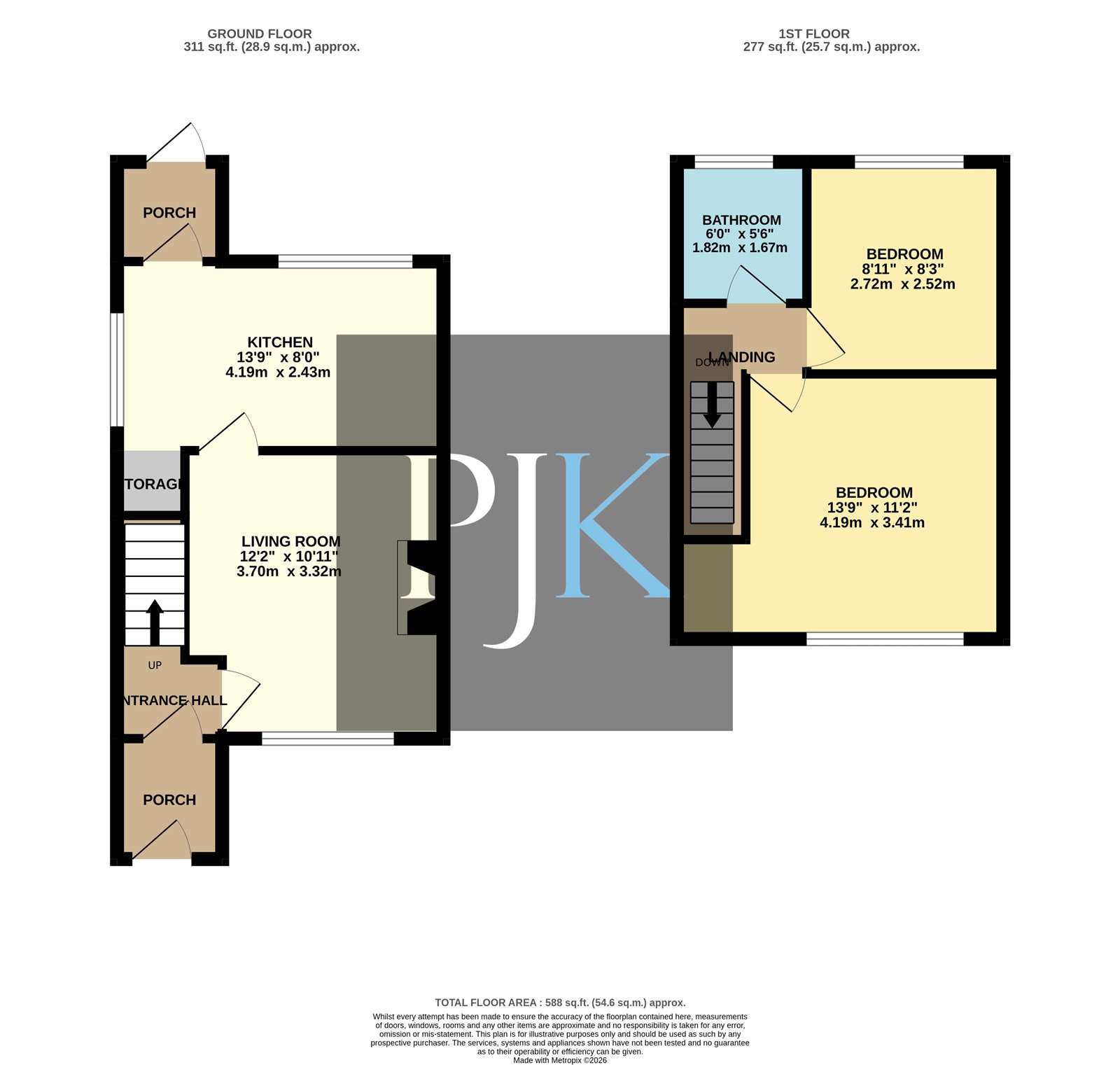 To the first floor are two well-proportioned bedrooms, including a generous double bedroom and a further comfortable second bedroom. These rooms are served by a modern three-piece bathroom suite.