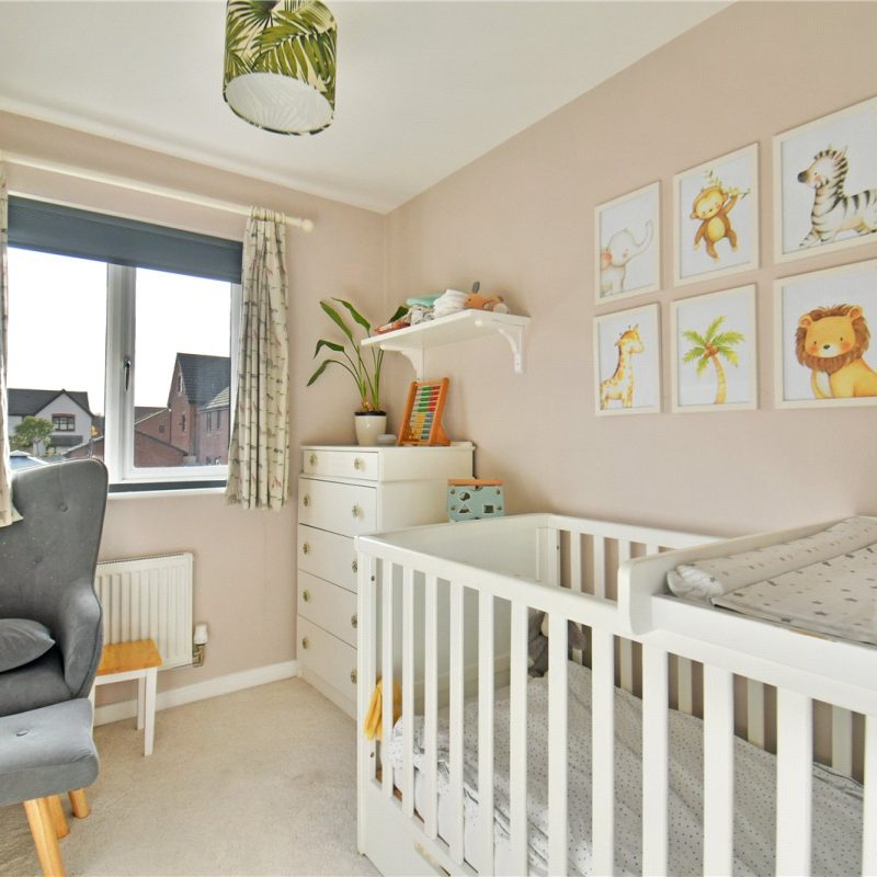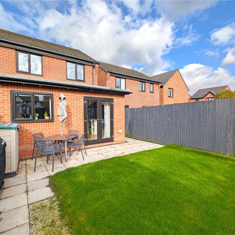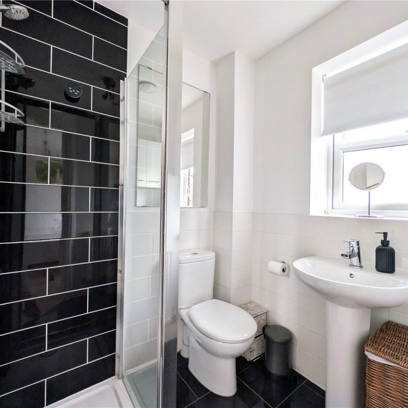 Upstairs are three well-proportioned bedrooms, including a stylish principal suite with fitted wardrobes and an en suite shower room. The remaining bedrooms are served by a modern family bathroom with sleek fittings and contemporary décor.