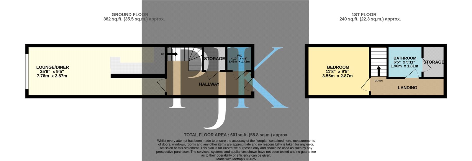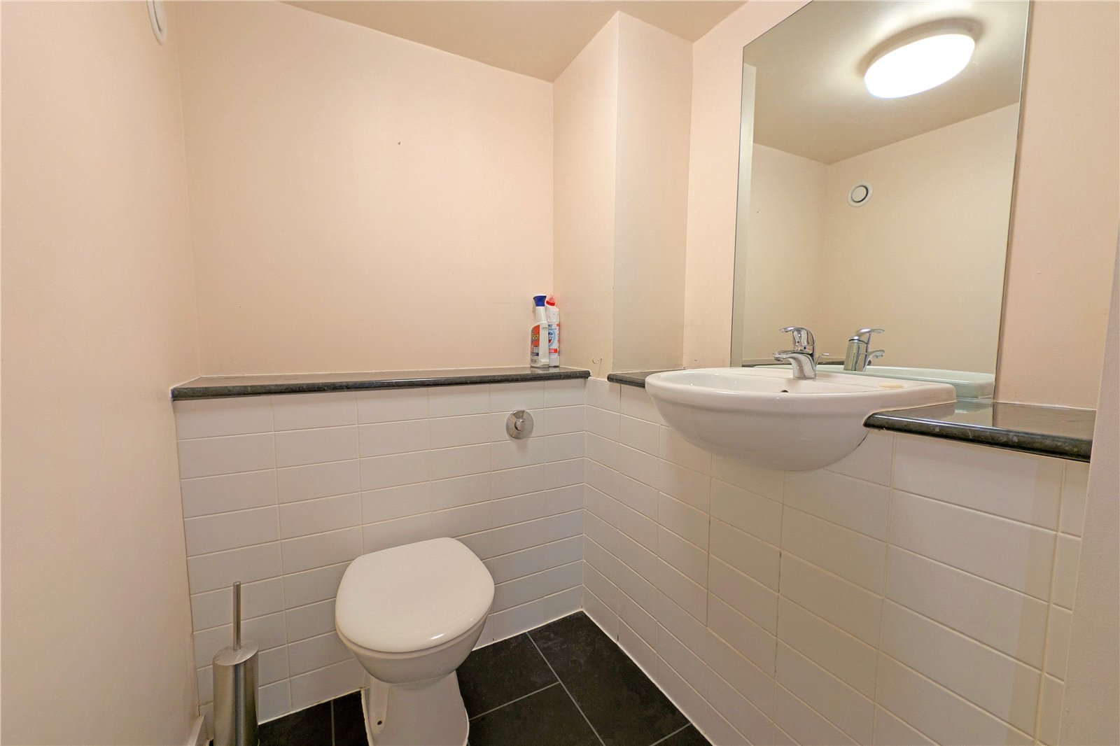 Arranged over two floors, the accommodation comprises a welcoming entrance hallway leading to a spacious open plan living and kitchen area with modern fitted units, integrated appliances and breakfast bar seating. A separate WC provides additional convenience on the lower level. Upstairs, a generous double bedroom features ample natural light and exposed brick detailing, complemented by a modern bathroom suite.