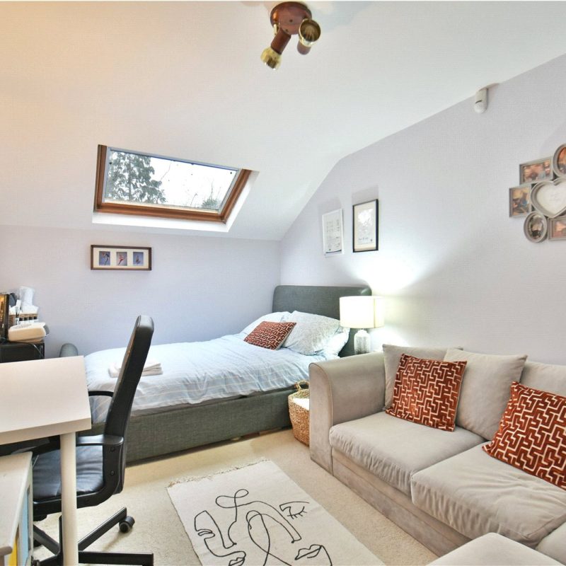 The first floor reveals two further bedrooms, including an impressive principal bedroom which benefits from a private en-suite bathroom with shower over bath. The additional bedroom is well-proportioned and ideal for a child’s room, guest room or home office.