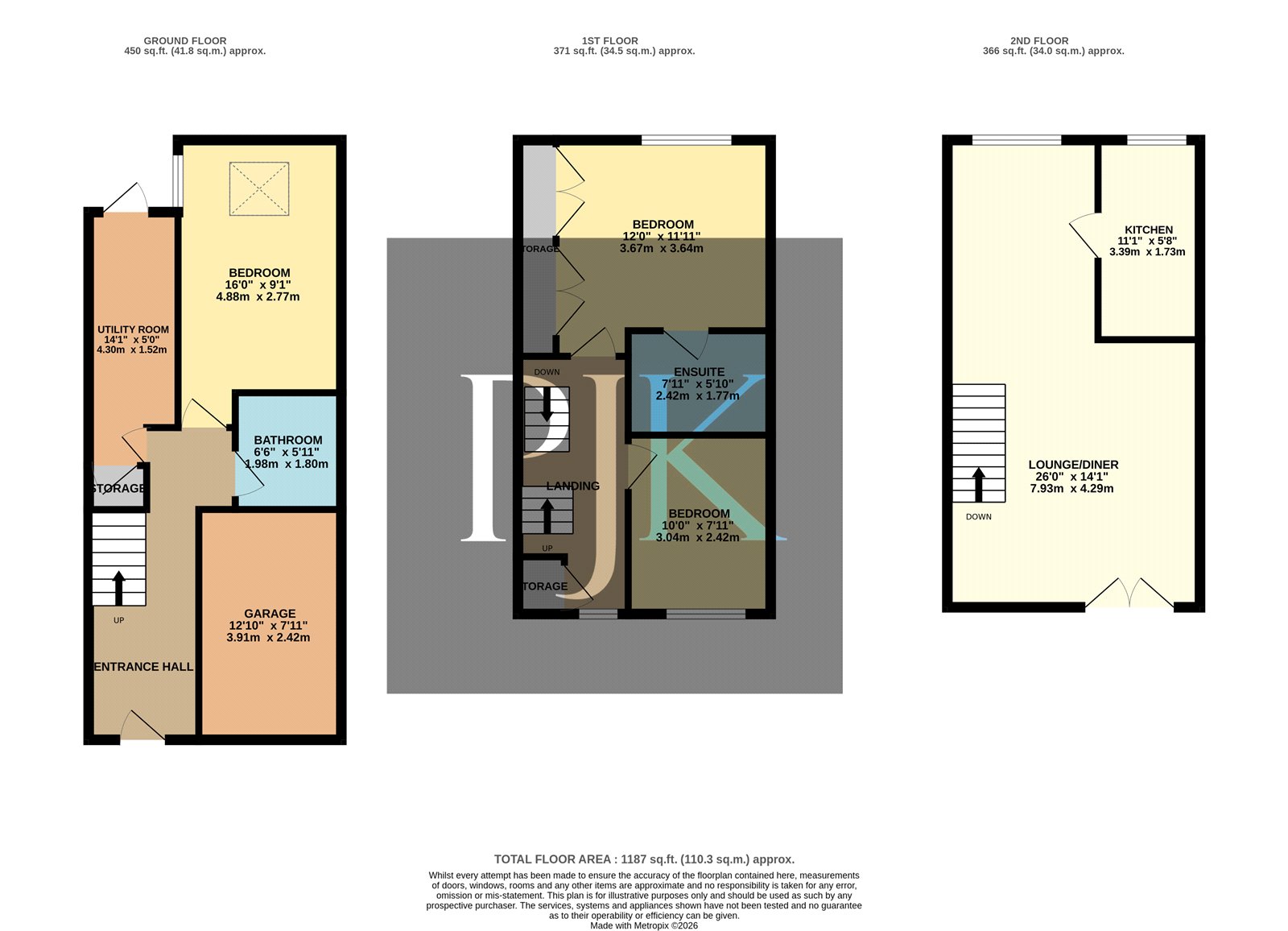 The accommodation begins with a welcoming entrance hallway. To the ground floor is a generous double bedroom, a modern bathroom suite and a useful utility room, providing excellent flexibility for guests, home working or multigenerational living. The garage is located adjacent to the property and is accessed externally.