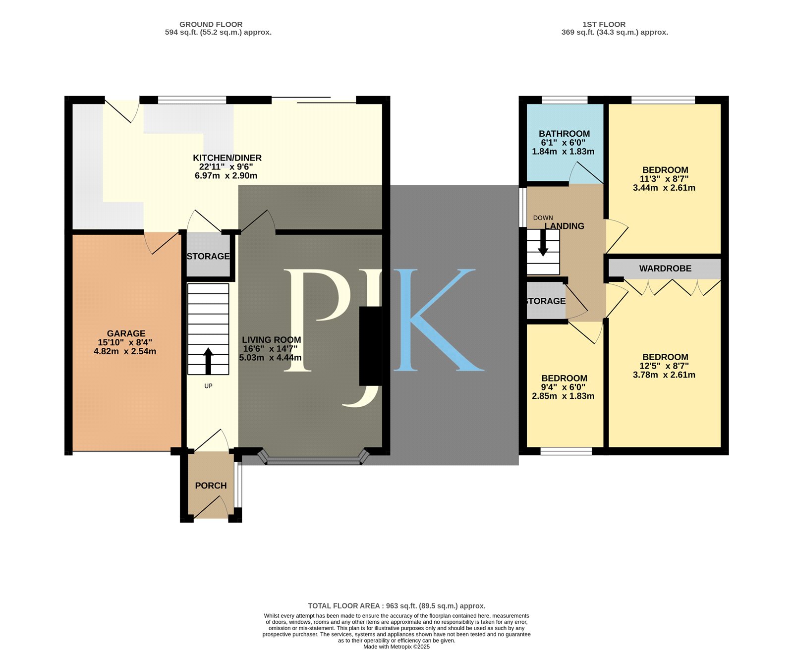 Upstairs reveals three well-proportioned bedrooms, including two generous doubles and a further single ideal for a nursery or home office. The principal bedroom features floor-to-ceiling fitted wardrobes, while all rooms are served by a modern three-piece family bathroom.