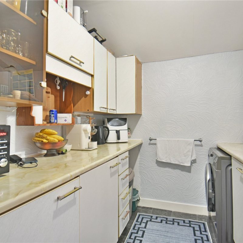 The accommodation comprises a welcoming entrance hallway leading to a bright front lounge, followed by a second sitting room featuring an attractive fireplace — offering versatile living space. To the rear, a fitted kitchen provides matching wall and base units, ample work surfaces and space for appliances.