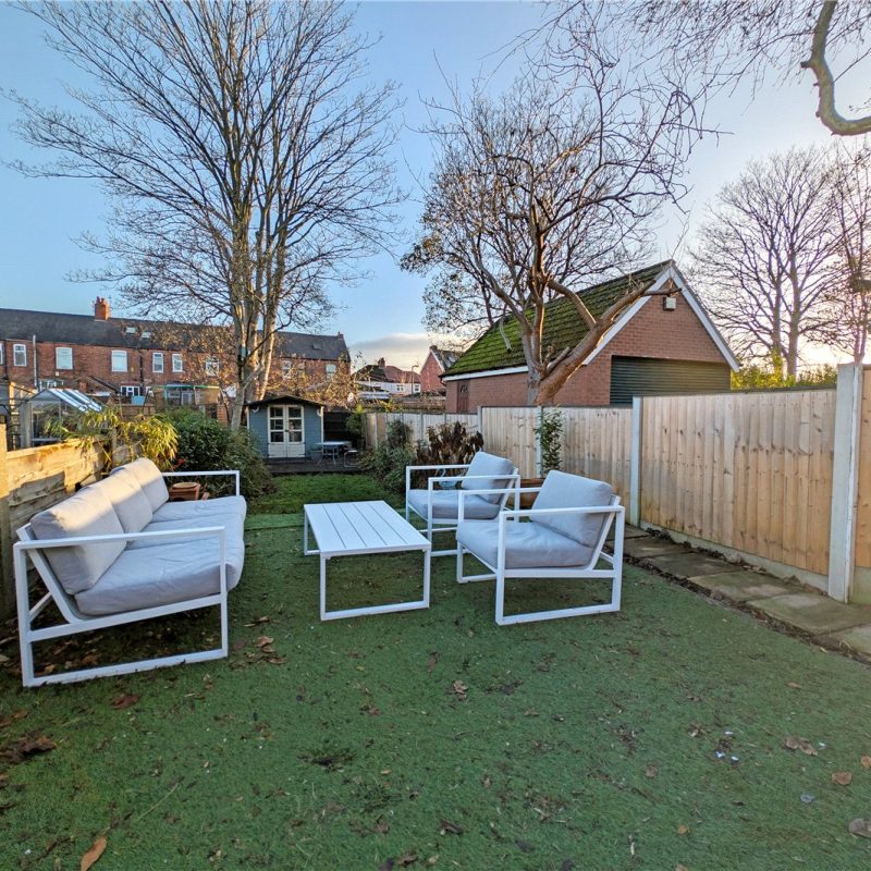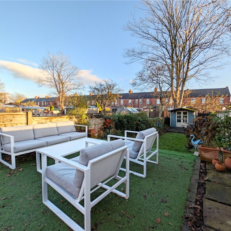 Externally, the property continues to impress. To the rear is an enclosed garden with a paved patio and lawned area, offering a pleasant space for outdoor dining and relaxation. A useful yard area and off-street parking add further practicality.