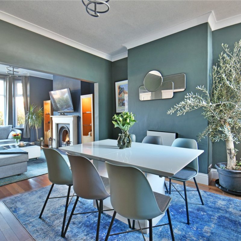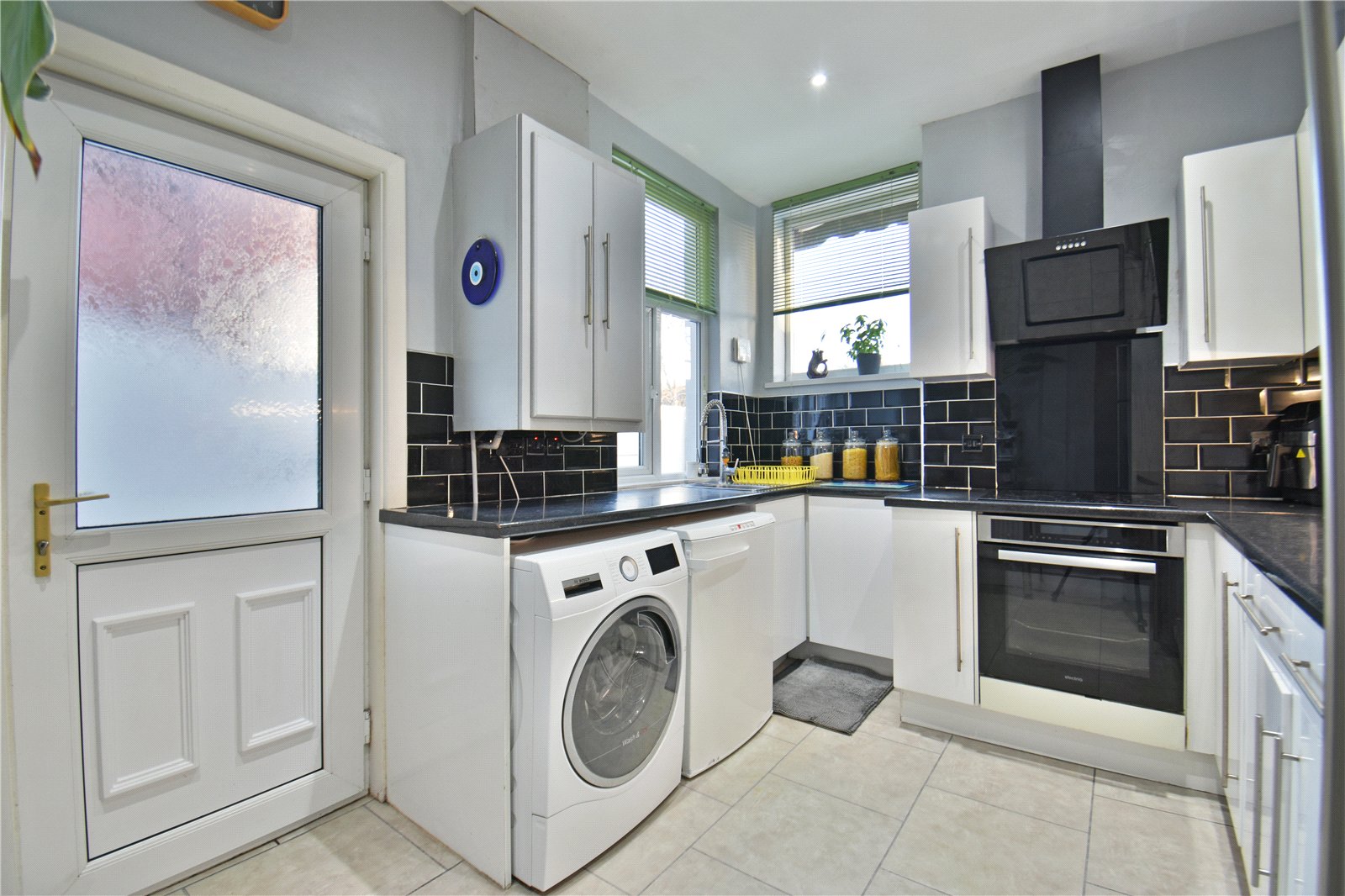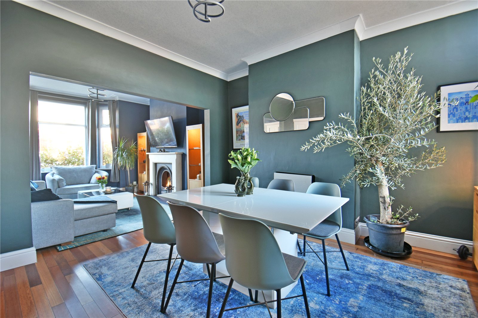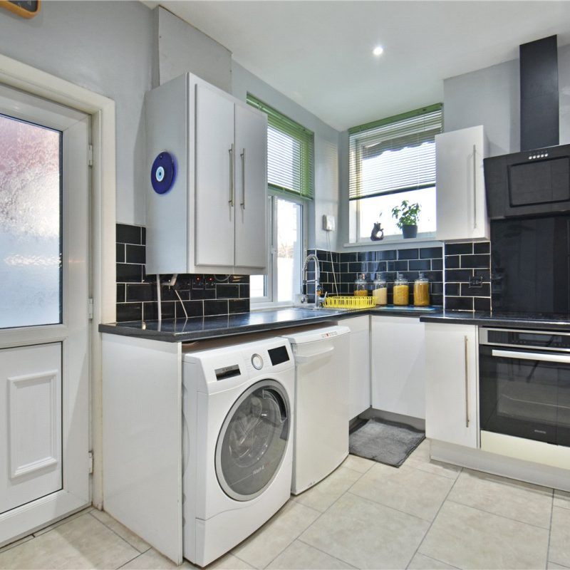 The accommodation begins with a spacious and welcoming entrance hallway leading into an impressive open plan living and dining space. This bright and versatile room features a charming fireplace, a front-facing bay window and ample space for both lounge and dining furniture — offering the ideal setting for everyday living and entertaining. To the rear, the modern fitted kitchen is well finished with contemporary units and work surfaces, and provides access to the rear yard and garden.