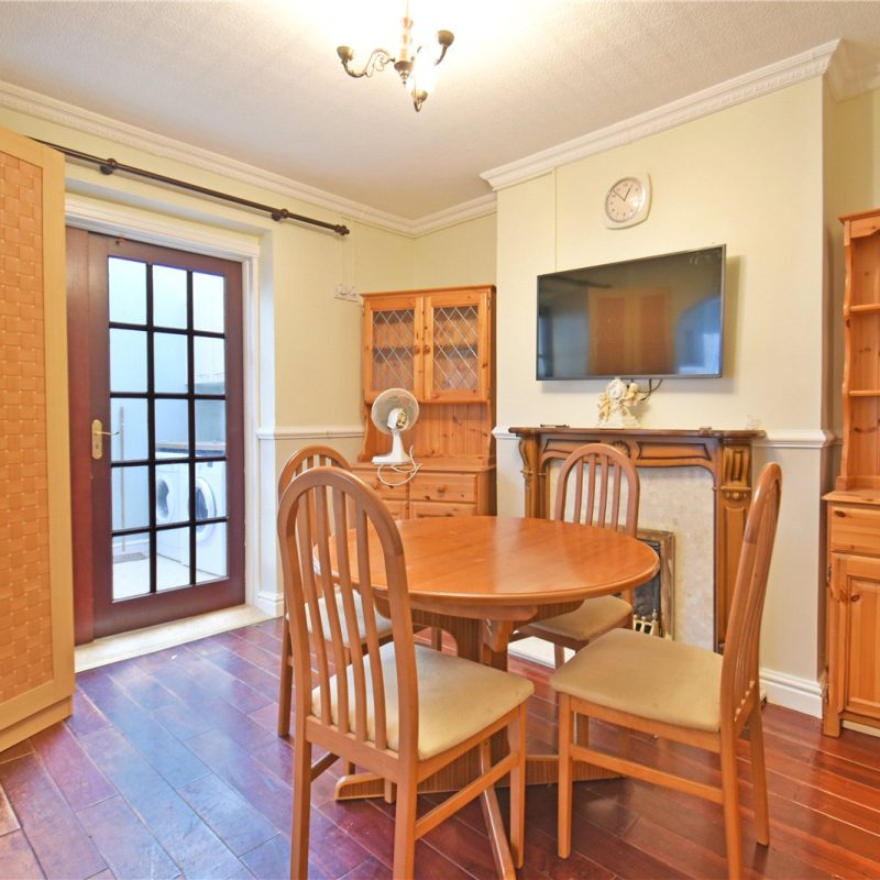 The accommodation begins with an entrance hallway leading to a bright bay-fronted living room featuring an attractive fireplace. To the rear sits a well-sized dining room, providing ample space for family dining and entertaining. The galley kitchen offers a range of matching wall and base units and leads through to a useful utility area, ideal for housing white goods.