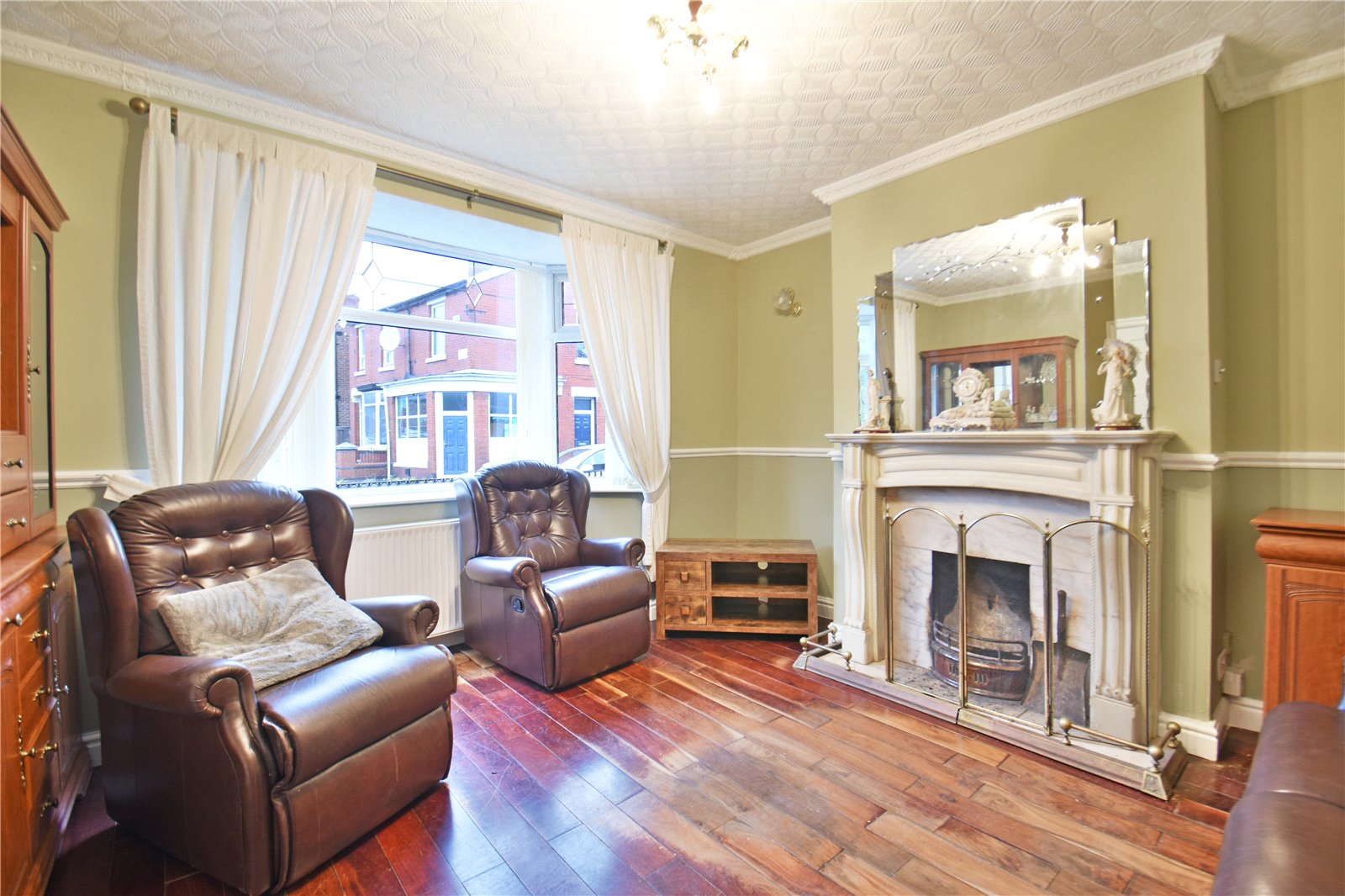 • Bay-fronted living room with feature fireplace