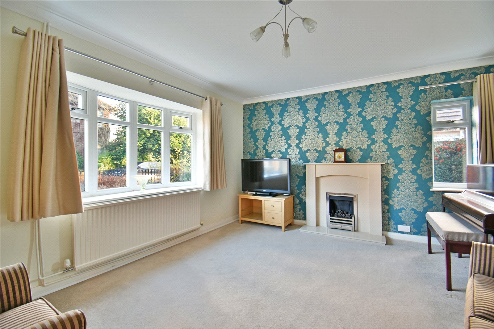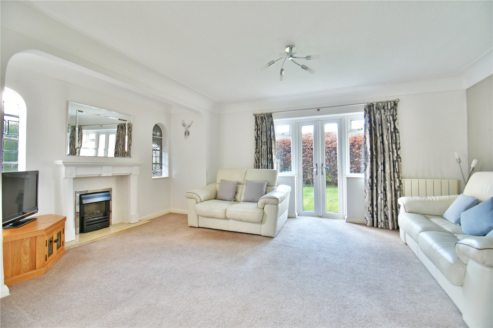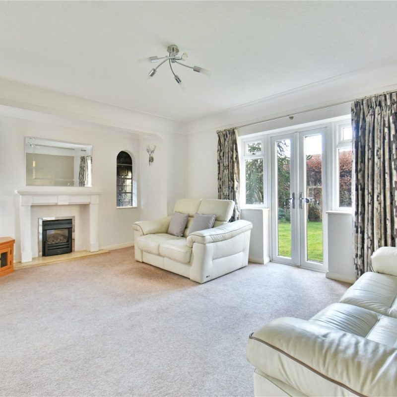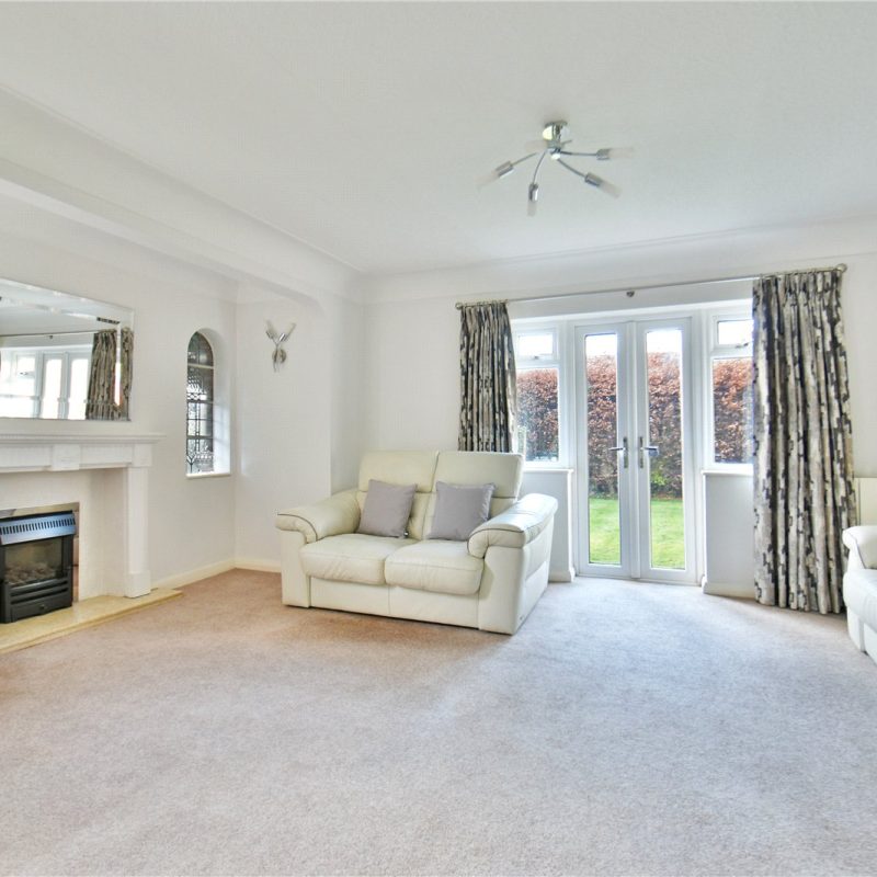 A wide and welcoming entrance hallway sets the tone for the generous proportions throughout. To the front, a charming sitting room enjoys a beautiful bay window allowing the room to be filled with natural light — an ideal setting for reading, relaxing or entertaining. To the rear, the principal living room provides a superb everyday family space, complete with a stunning feature fireplace and attractive original windows. French doors open directly onto the garden, creating a seamless connection between inside and out.