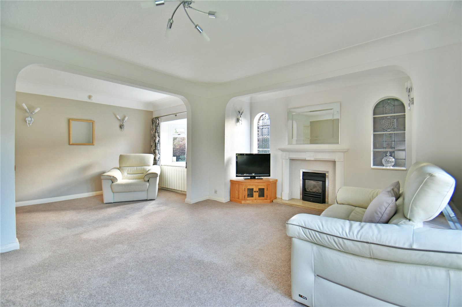 - Two generous reception rooms including a stunning main living area with feature fireplace