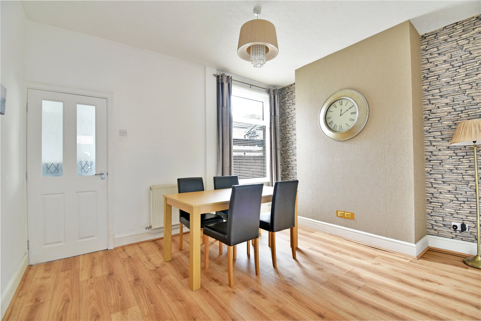 The accommodation begins with a welcoming living room to the front of the property, featuring an attractive electric fire inset and providing a comfortable reception space. To the rear is a generous dining room, offering ample space for freestanding furniture and ideal for both everyday living and entertaining. Completing the ground floor is a modern fitted kitchen, benefitting from a range of attractive wall and base units, excellent work surface space and room for white goods.