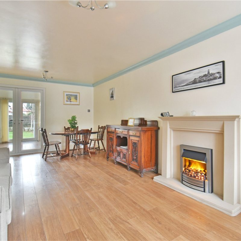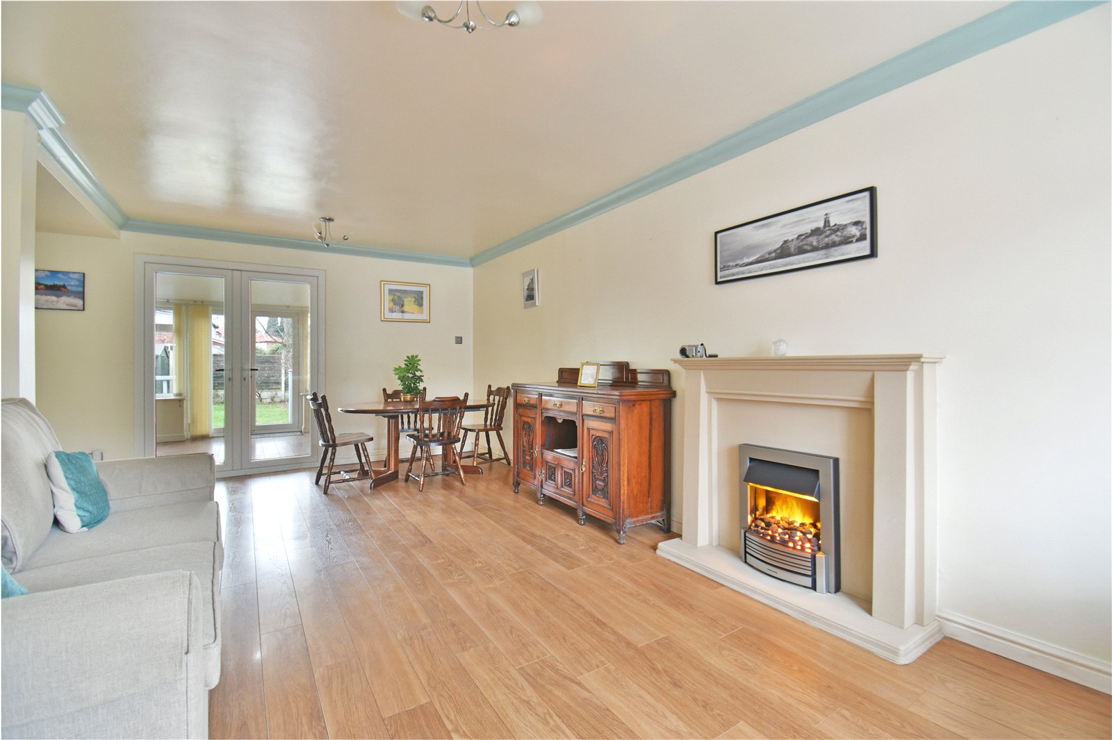 The accommodation begins with a welcoming entrance porch leading into a spacious entrance hallway, which houses the staircase to the first floor. To the front of the property is a large and inviting living room, centred around an attractive feature fireplace and offering a comfortable space for everyday living.