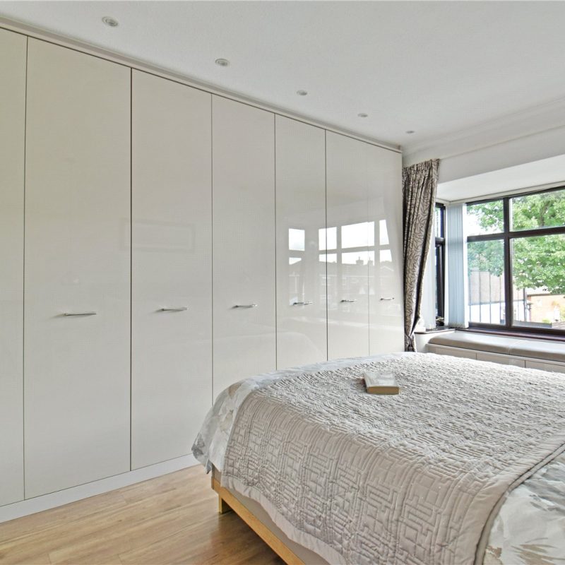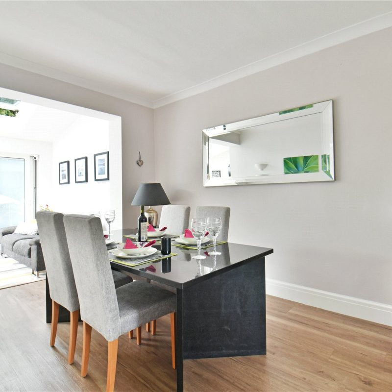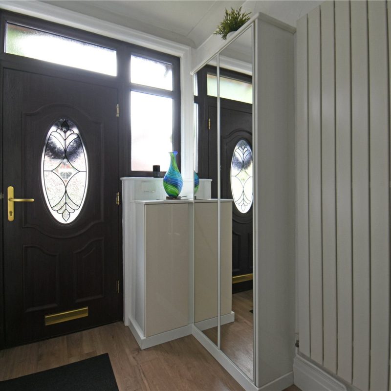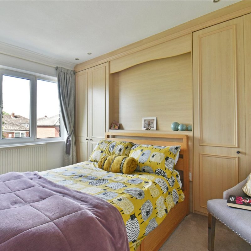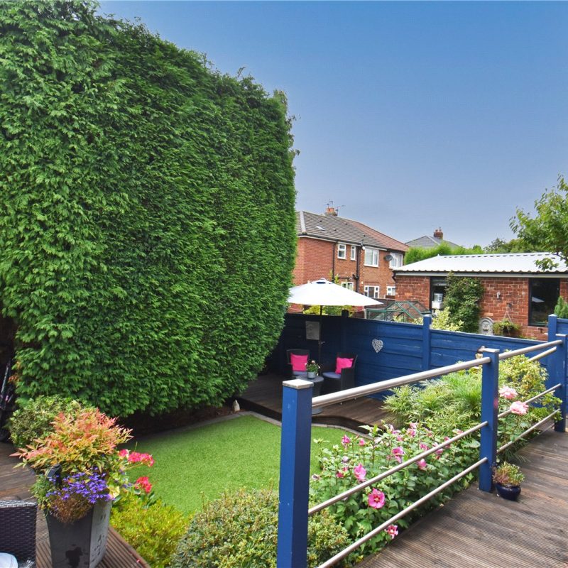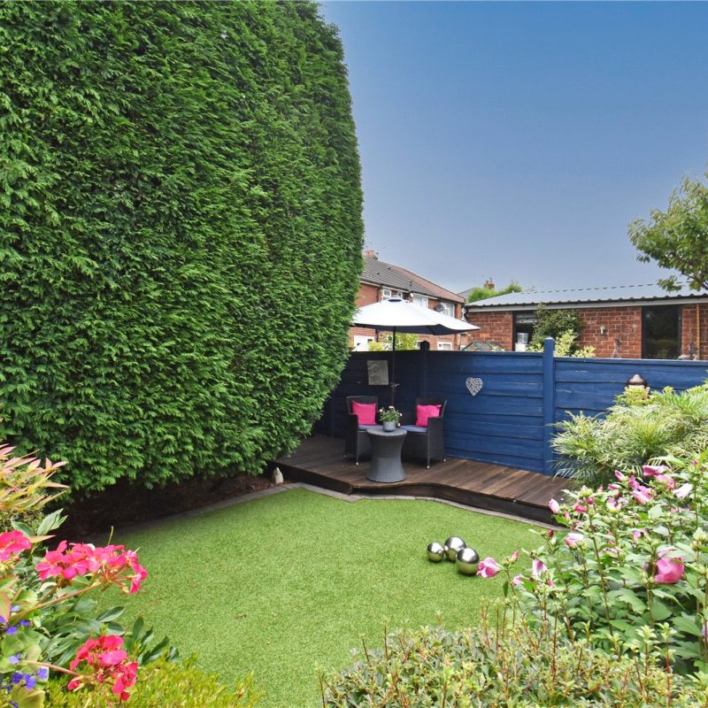 Externally, the property sits on an attractive plot with an extensive driveway providing ample off-road parking. To the rear, large sliding doors with integral blinds open onto a beautifully landscaped garden, featuring a raised decked area that steps down into the well-stocked garden below—an ideal space for relaxation and outdoor entertaining.