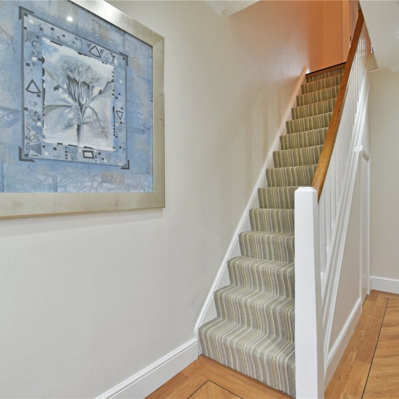 To the first floor is a spacious landing with a useful storage cupboard, leading to three well-proportioned bedrooms, including two generous double bedrooms and a larger-than-average single room, perfectly suited to a growing family or home office. These rooms are served by an immaculate four-piece family bathroom, comprising a walk-in shower, bath, hand wash basin and WC.