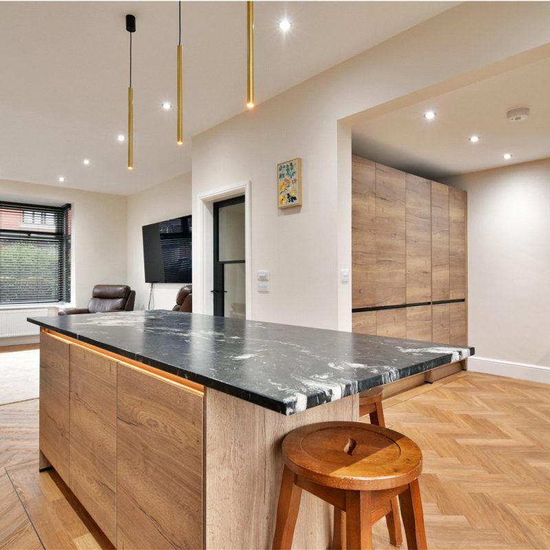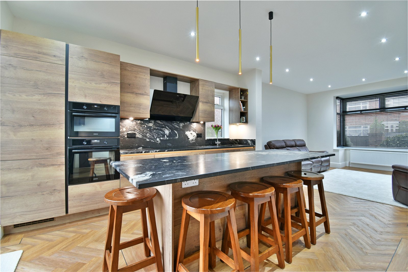 - Stunning open-plan kitchen and living space with island