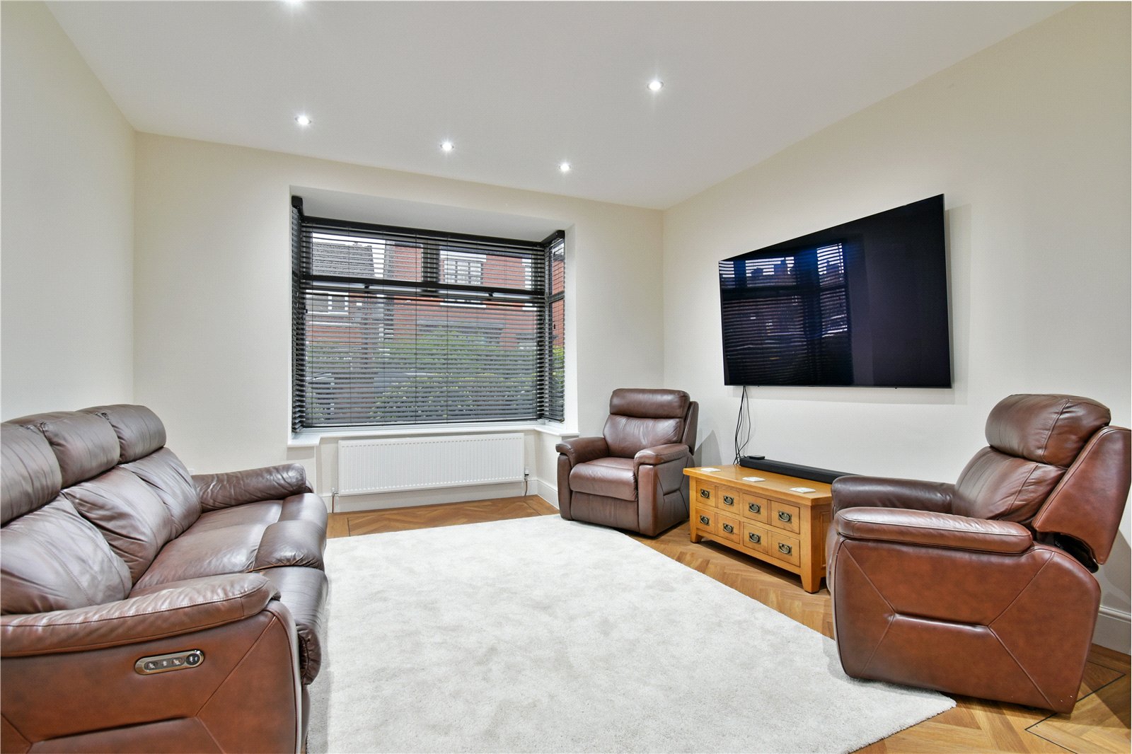 - Hardwood parquet flooring across the ground floor