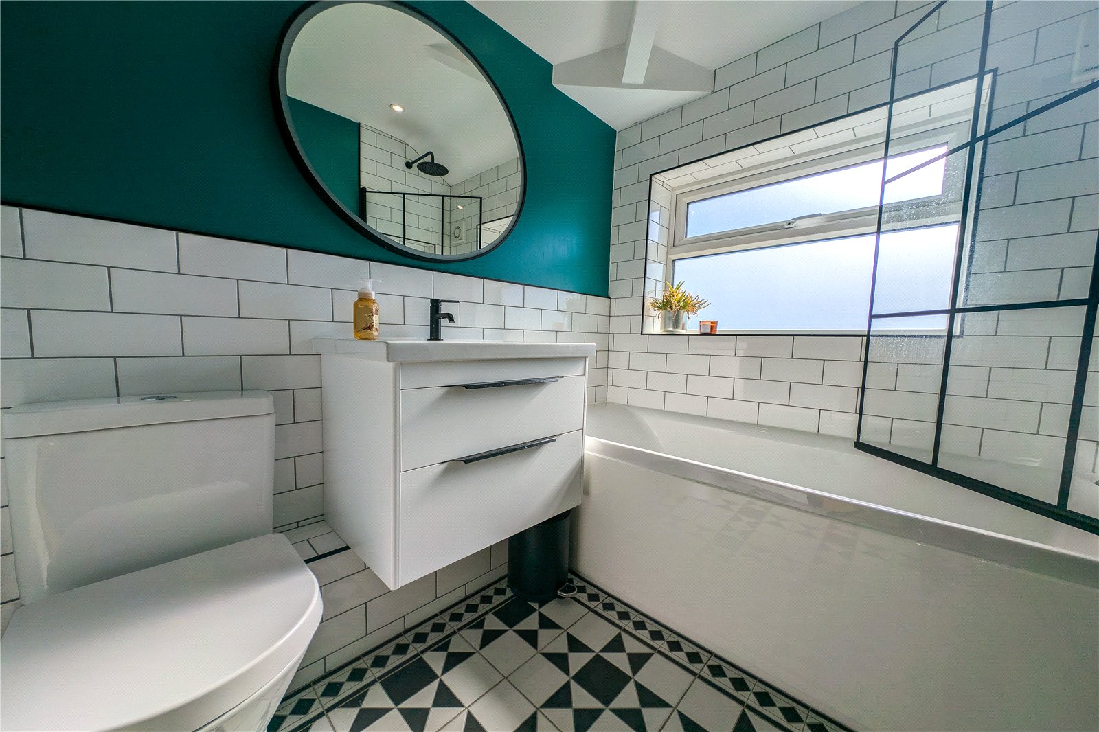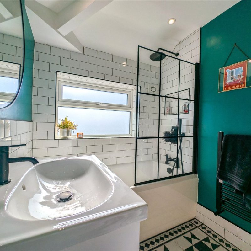 Upstairs, you’ll find three well-proportioned bedrooms—two generous doubles and a larger-than-average single—offering flexible options for families or homeworking. A beautifully appointed bathroom suite with a bath and shower over, hand wash basin, and WC completes the interior.