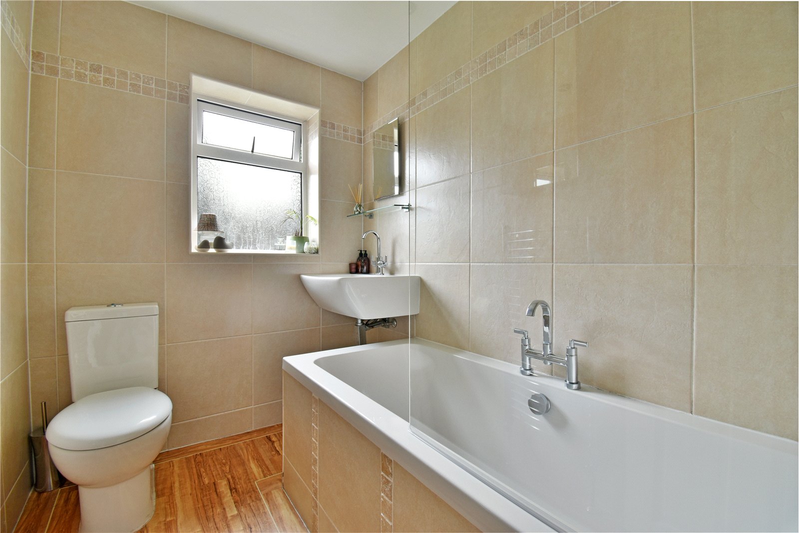 • Stylish three-piece bathroom suite