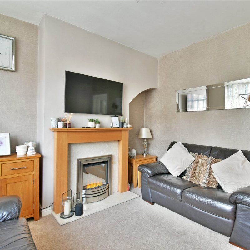 The accommodation begins with a welcoming entrance hallway leading through to a bright bay-fronted living room, creating a comfortable and inviting reception space. To the rear of the property is a modern fitted dining kitchen, offering a range of attractive matching wall and base units, ample work surface space and room for freestanding appliances, alongside space for dining furniture — ideal for both everyday living and entertaining.