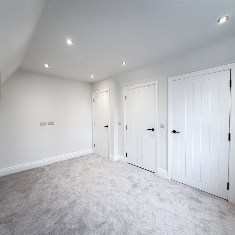 The first floor reveals two double bedrooms with en suite shower rooms and a family bathroom with a south facing balcony.