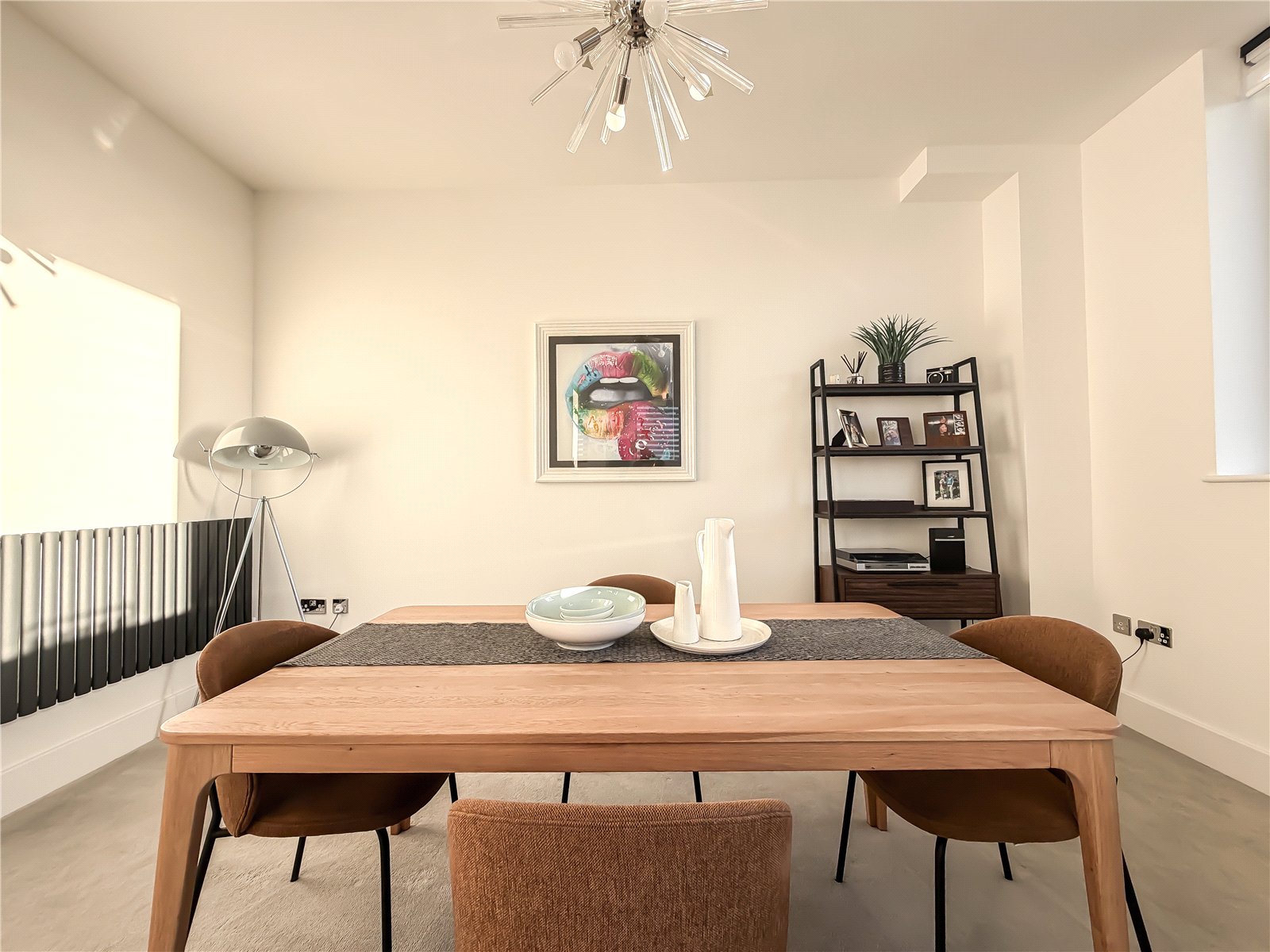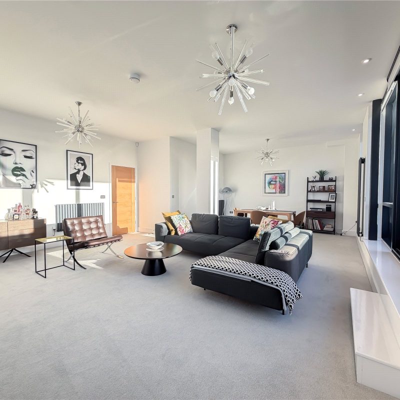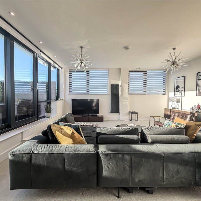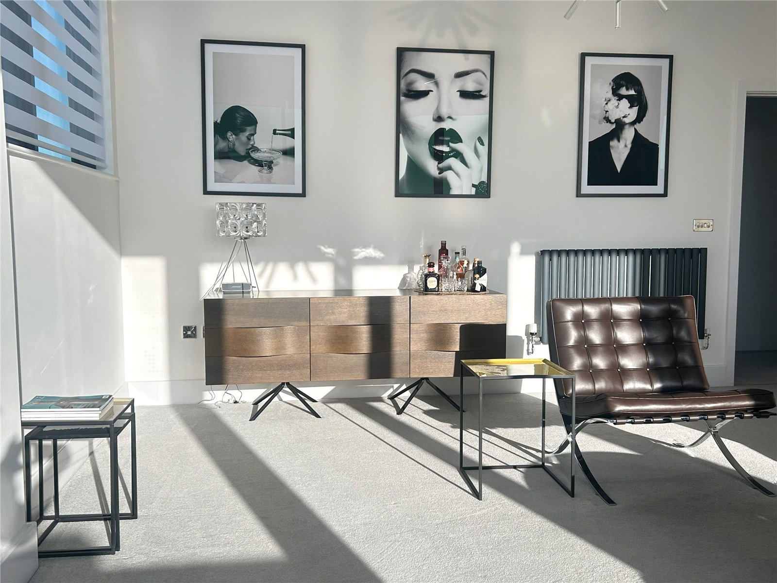 There is a spectacular open plan contemporary living space with ample space for both lounge and dining furniture. The room is flooded with natural light from the full dual aspect windows and sliding doors, leading out to the walk-out sun terrace enjoying a South Westerly aspect. The terrace provides the perfect space for entertaining in the warmer months. There is a seperate modern high spec fitted kitchen with sleek wall and base units, with integrated appliances all complimented by quartz worktops and a walk-in pantry. Further to the floor is a utility room and WC.