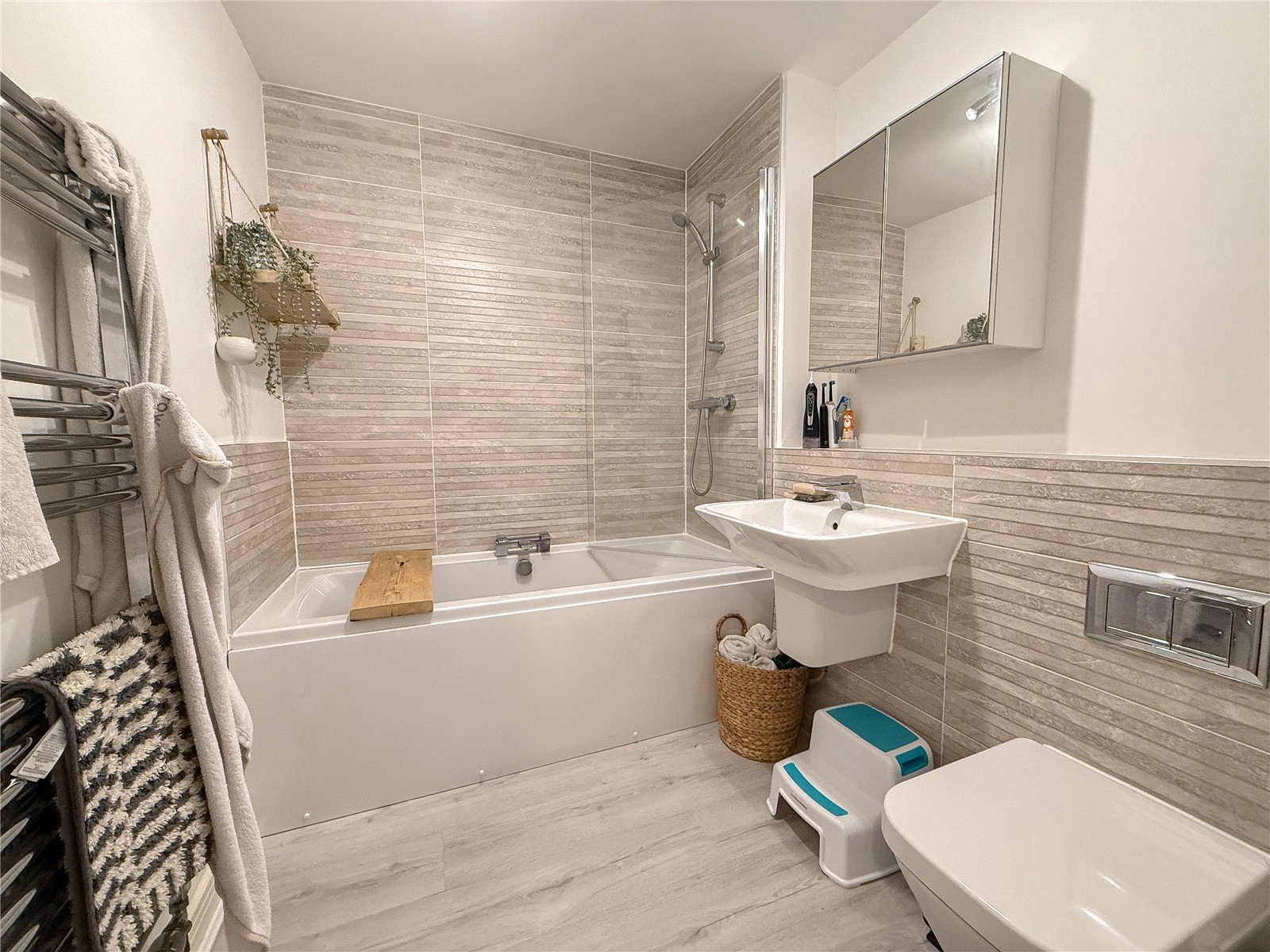 There is a bright and spacious open-plan contemporary living space with ample space for both living and dining furniture to help create the perfect environment for entertaining. Incorporated, is the sleek contemporary kitchen; complemented by integrated AEG appliances and quartz effect worktops.