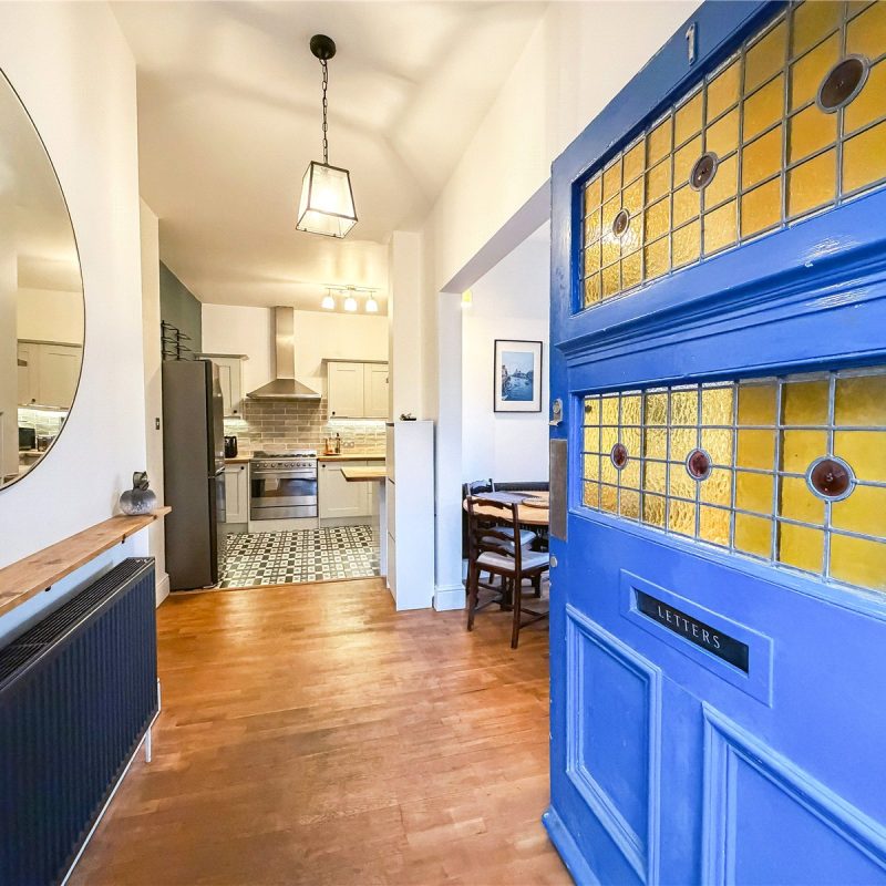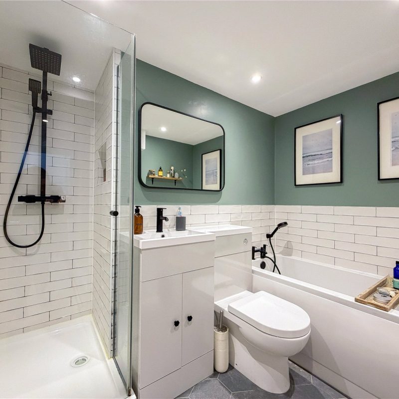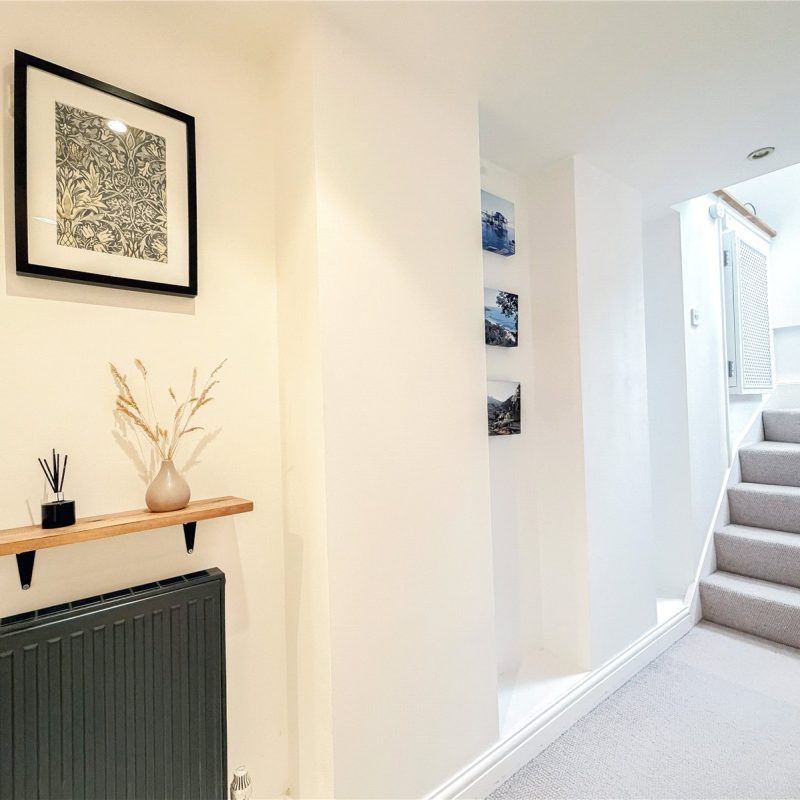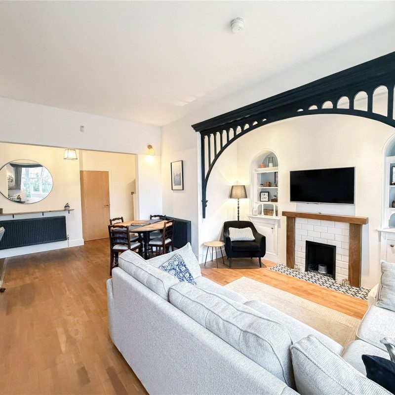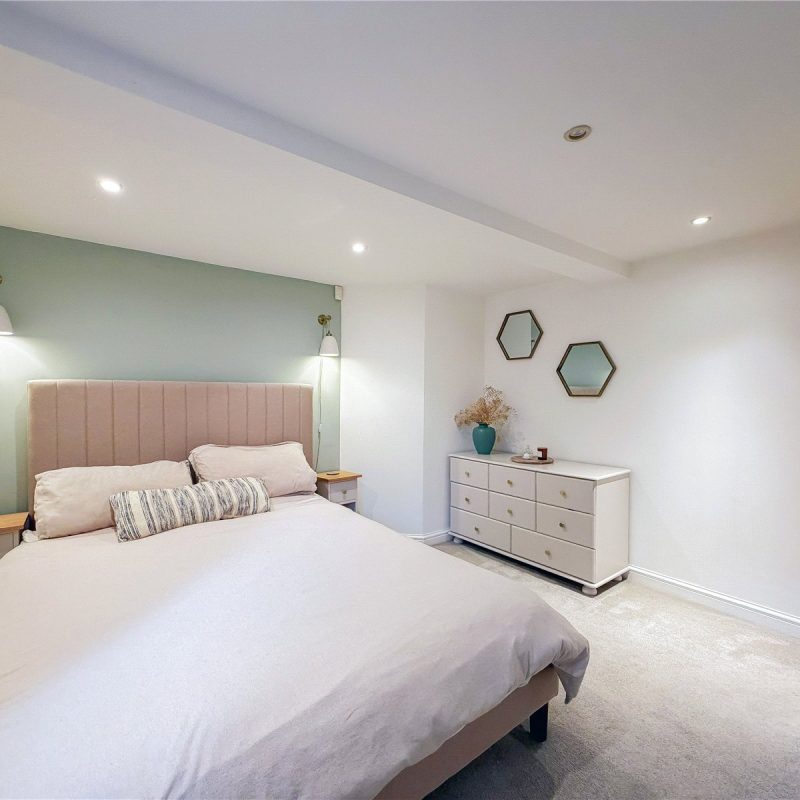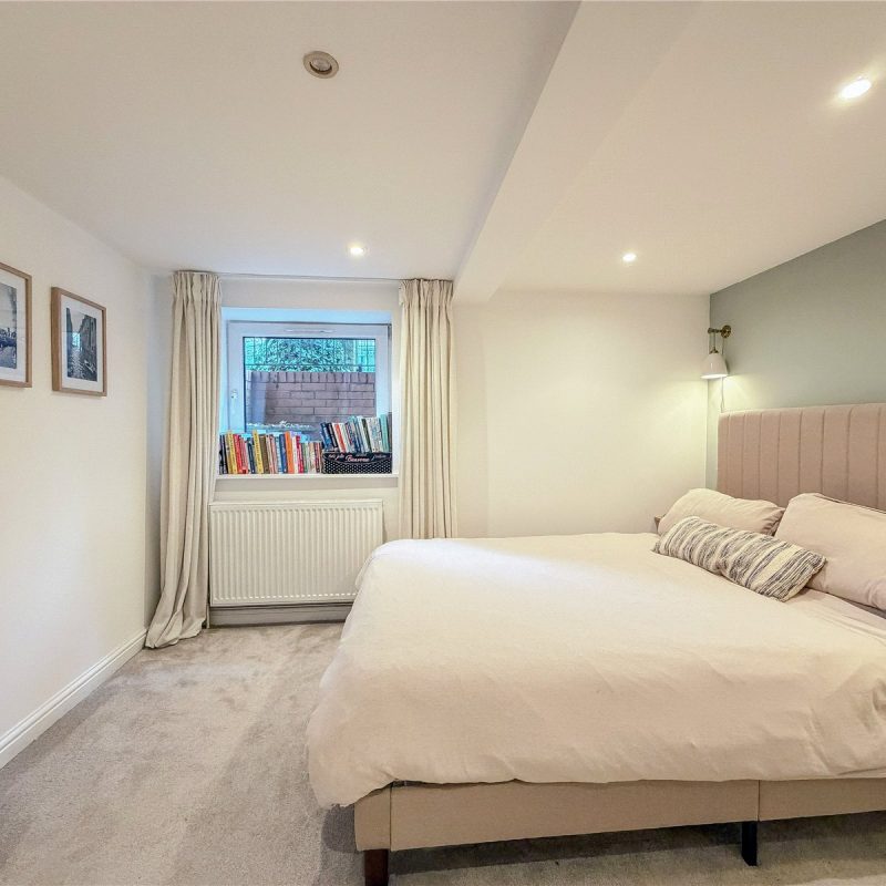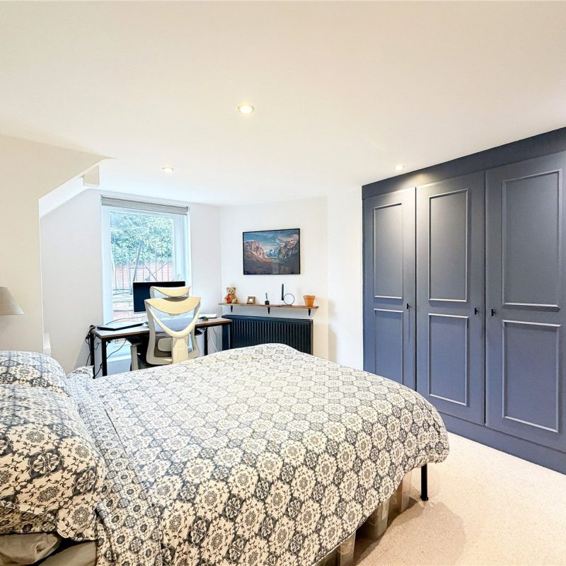 A staircase in the living room leads down to the lower ground floor occupied by two well-proportioned double bedrooms, with the principal bedroom benefiting from fitted wardrobes. The apartment is served by the well-appointed modern bathroom .
